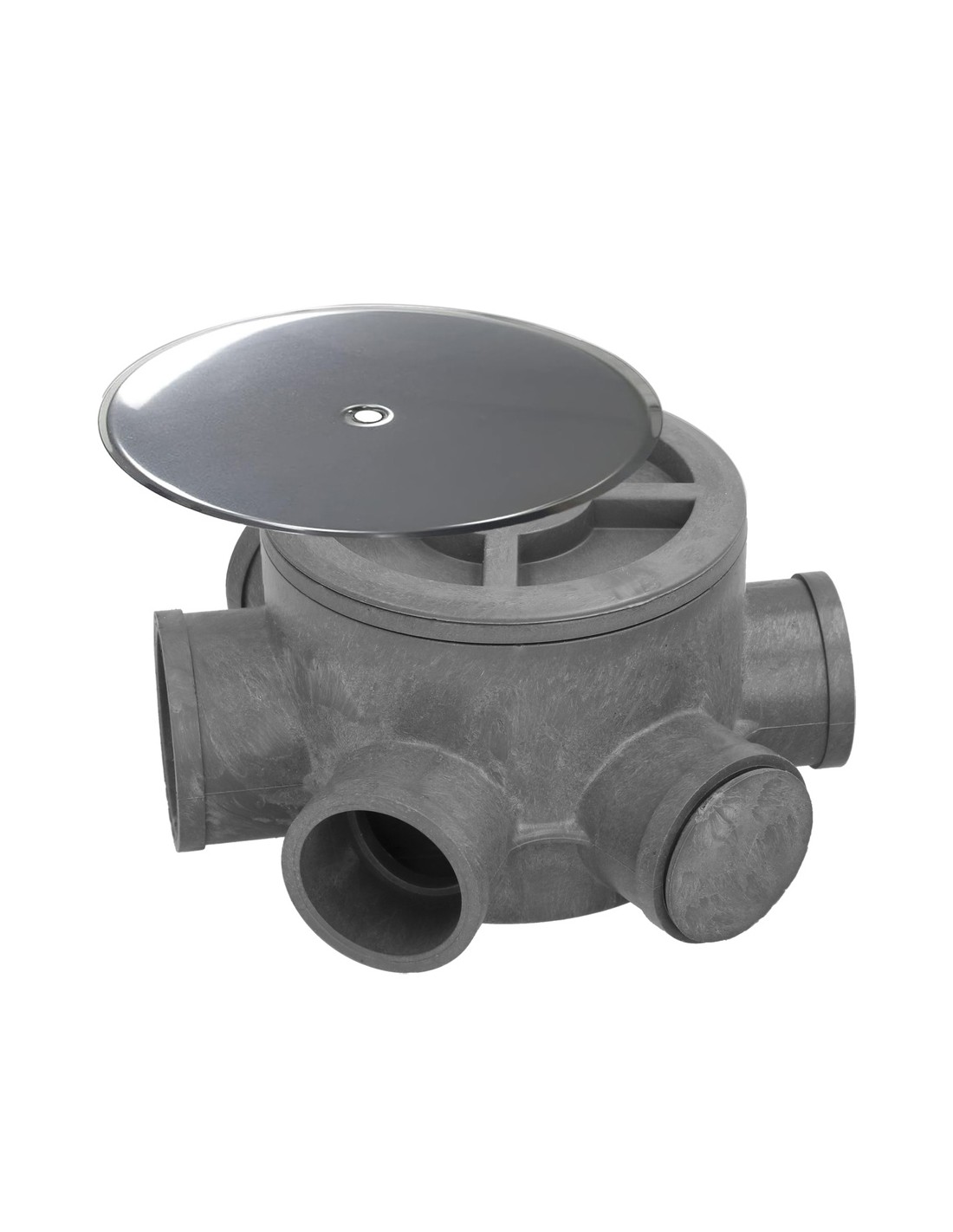 Bote Sifónico PVC Tuberias Ø 110 mm. Salidas Ø 50 y 40 mm. Altura 90 mm.