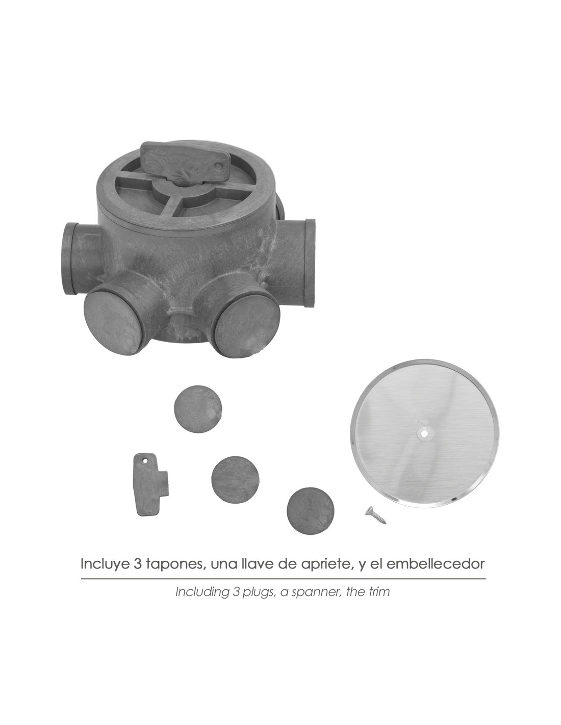 - También incluye 3 tapones ciegos por si es necesario anular alguna entrada.