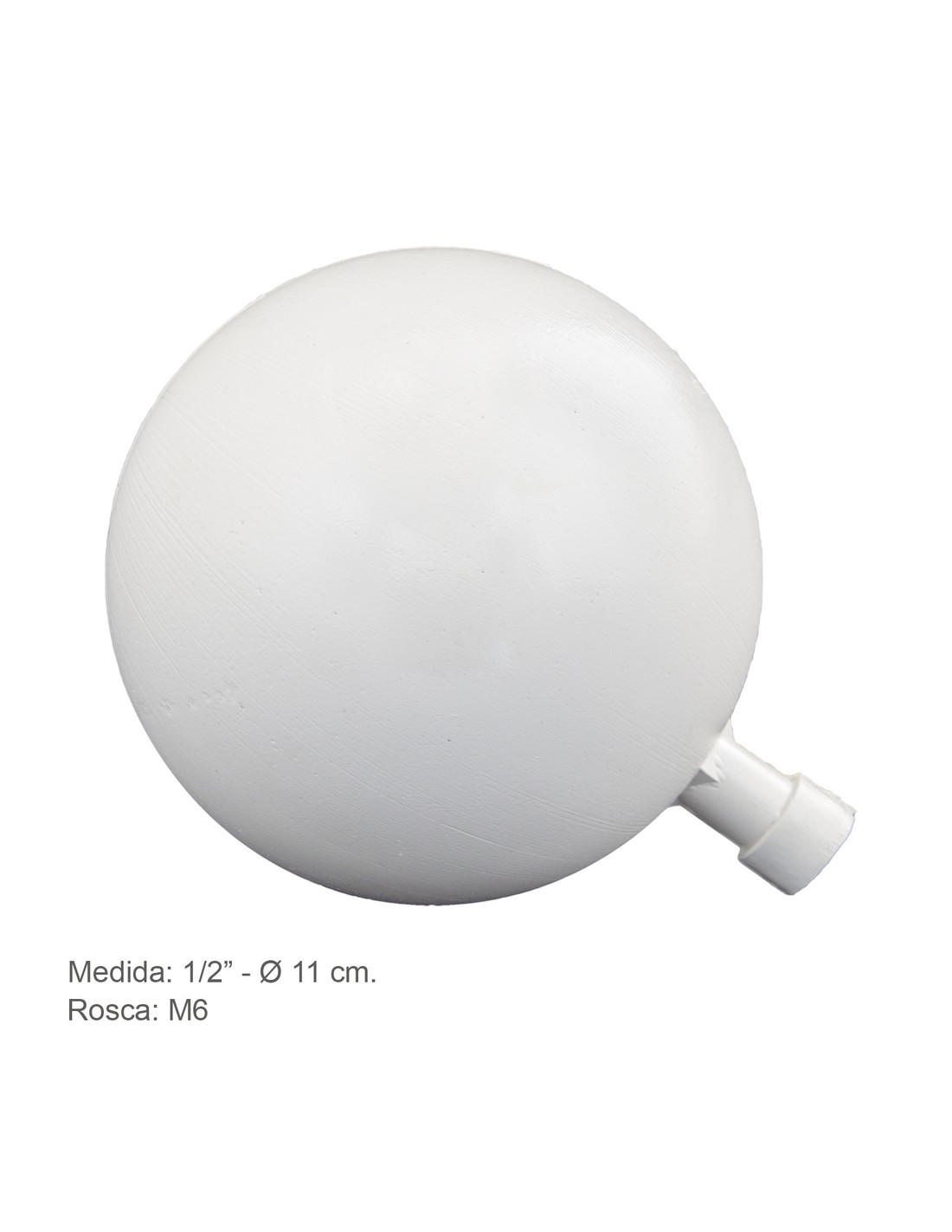 Boya plastico 1/2" x 11 Ø cm. rosca M6. - Boya para cisterna. - Material plástico. - Medida: 1/2" x 11 Ø cm. - Con rosca M6. - Articulo tambien conocido como recambio cisterna universal.