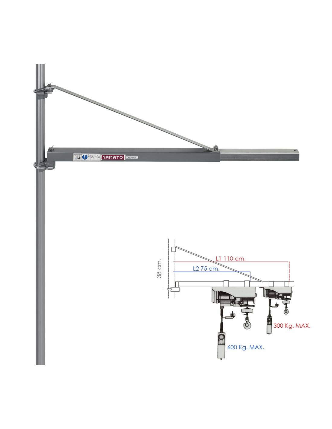 Brazo Soporte para Polipastos - Cabrestante capacidad de carga de 600 o 300 Kg.