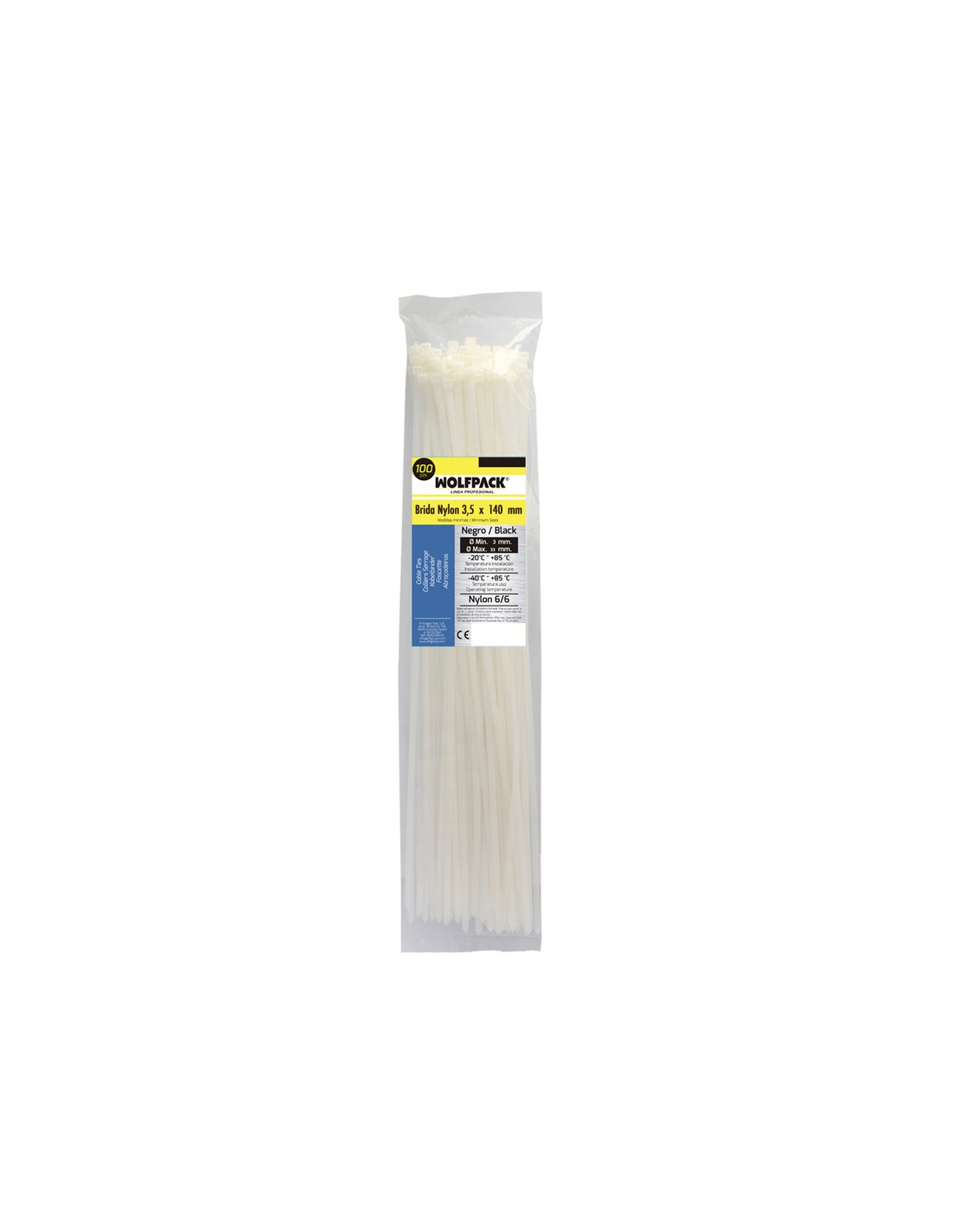 Brida Nylon 100%. Color Blanco / Natural 3,5 x 140 mm. 100 Piezas. Abrazadera Plastico, Organizador Cables, Alta Resistencia
