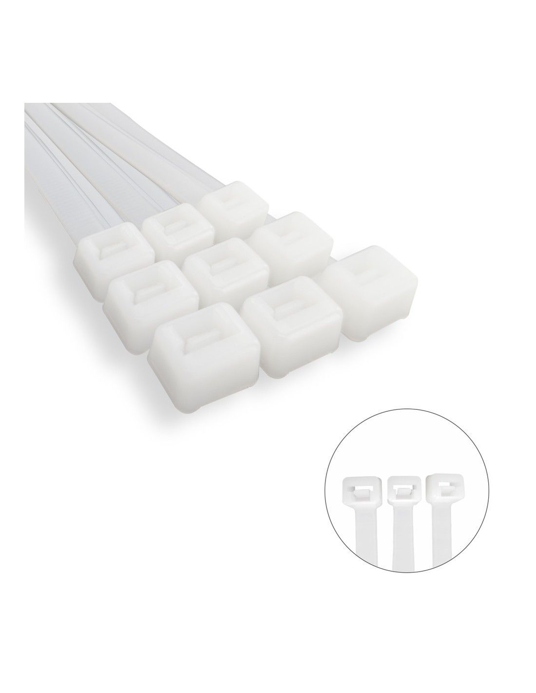 Brida Nylon 100%. Color Blanco / Natural 3,5 x 200 mm. 100 Piezas. Abrazadera Plastico, Organizador Cables, Alta Resistencia