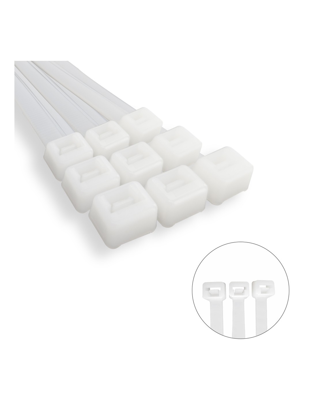 Brida Nylon 100%. Color Blanco / Natural 4,5 x 200 mm. 100 Piezas. Abrazadera Plastico, Organizador Cables, Alta Resistencia