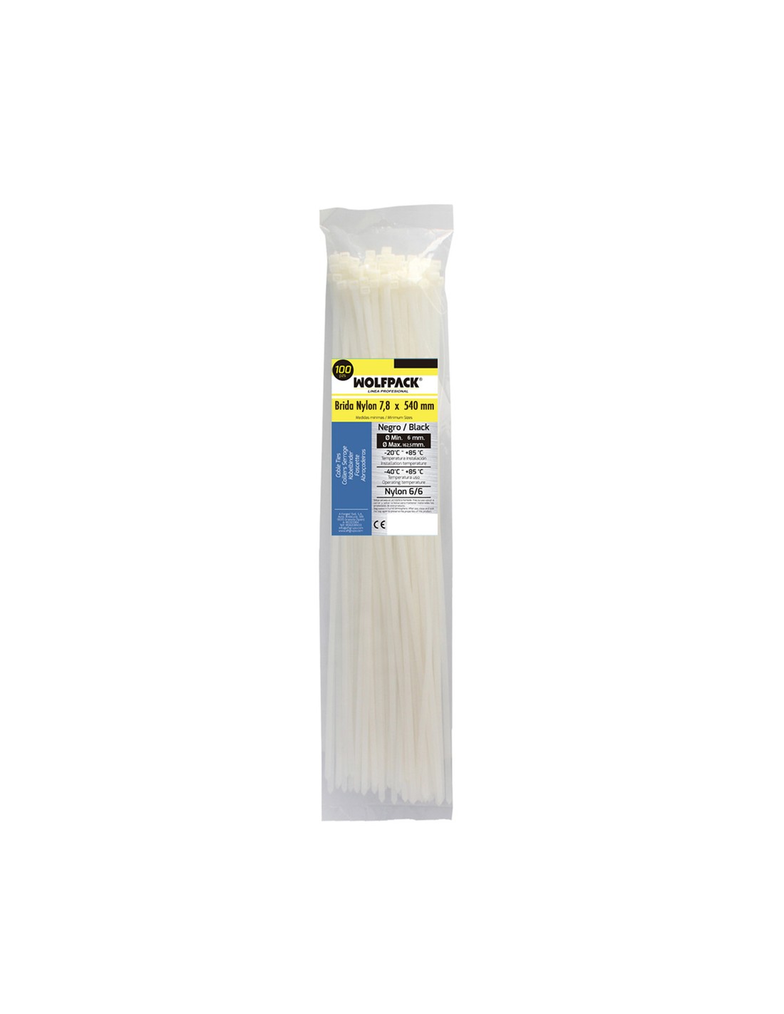Brida Nylon 100%. Color Blanco / Natural 7,8 x 540 mm. 100 Piezas. Abrazadera Plastico, Organizador Cables, Alta Resistencia