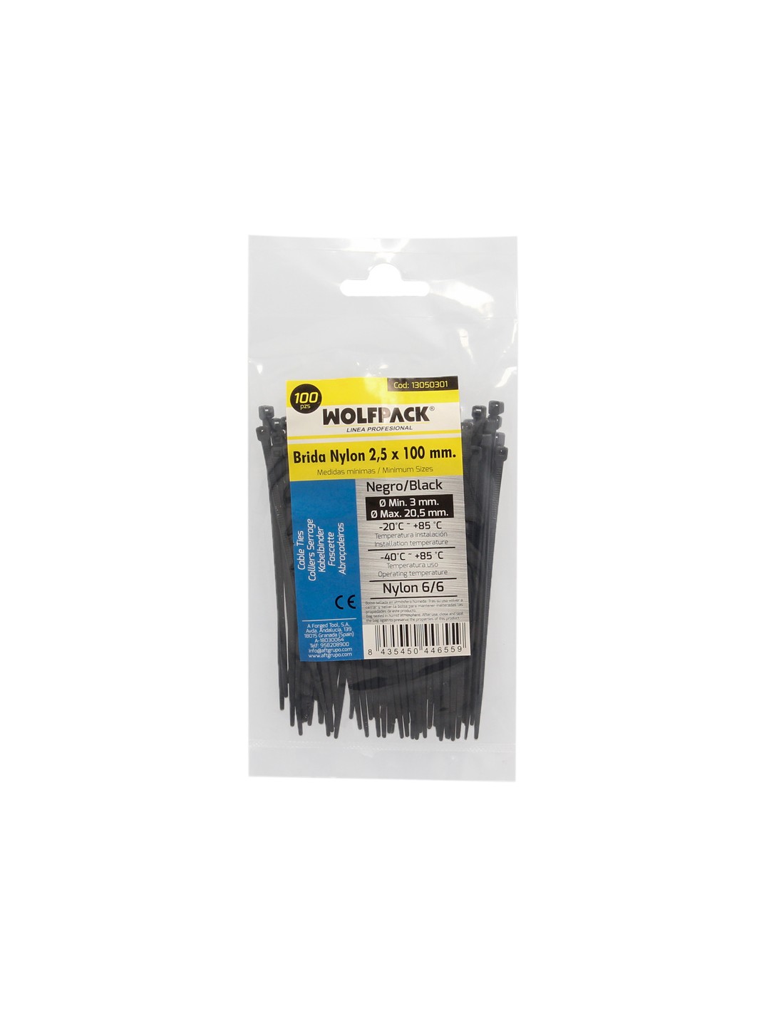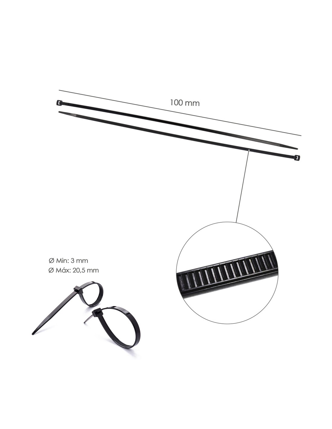 Brida Nylon 100%. Color Negro 2,5 x 100 mm. Bolsa 100 unidades. Abrazadera Plastico, Organizador Cables, Alta Resistencia
