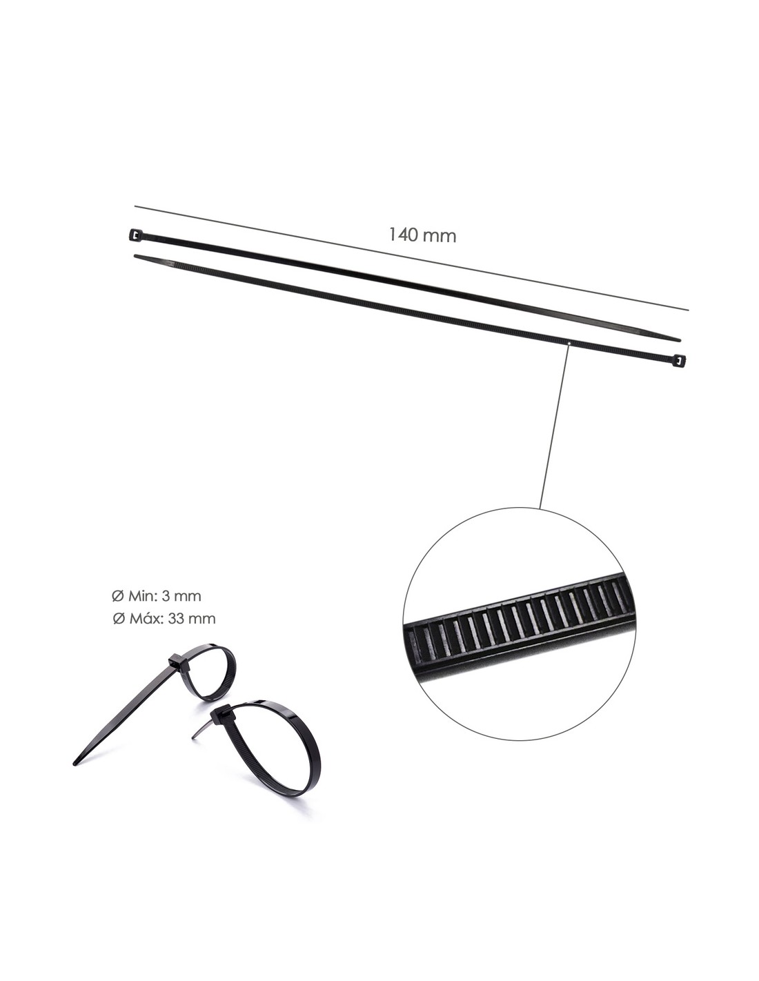 Brida Nylon 100%. Color Negro 3,5 x 140 mm. Bolsa 100 unidades. Abrazadera Plastico, Organizador Cables, Alta Resistencia