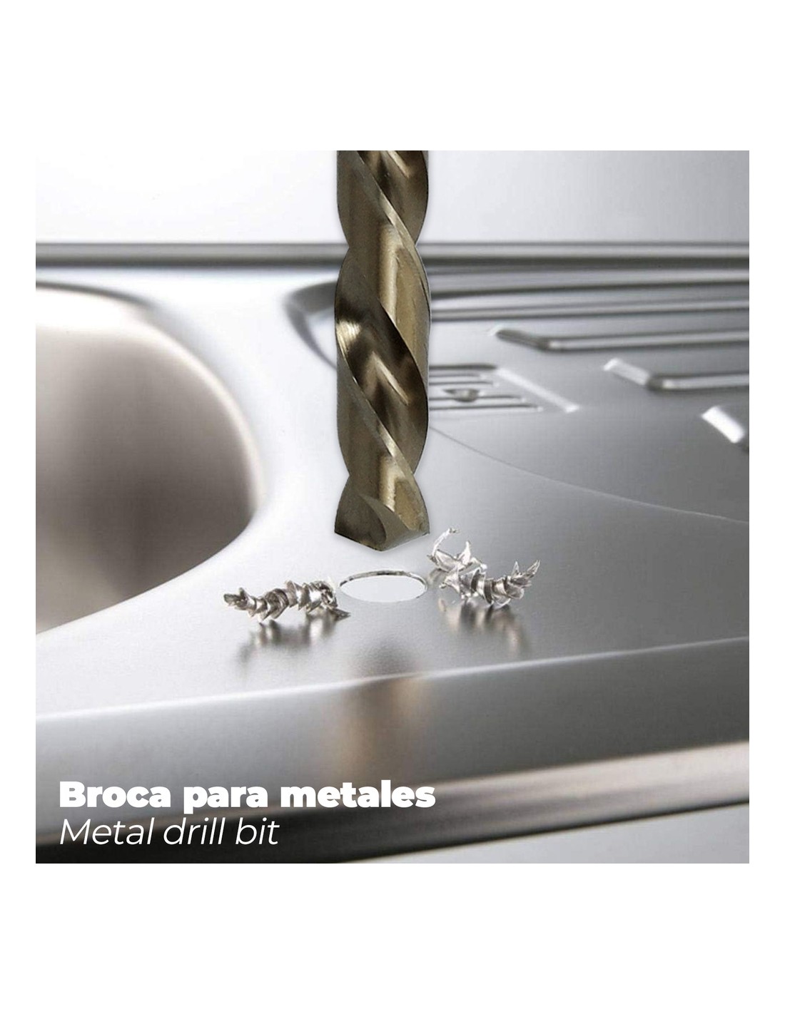 - Fabricada en aleciaón de HHS y coblato garantiza una durabilidad mayor que las brocas convencionales, así como una superior capacidad de corte, durabilidad y resistencia.