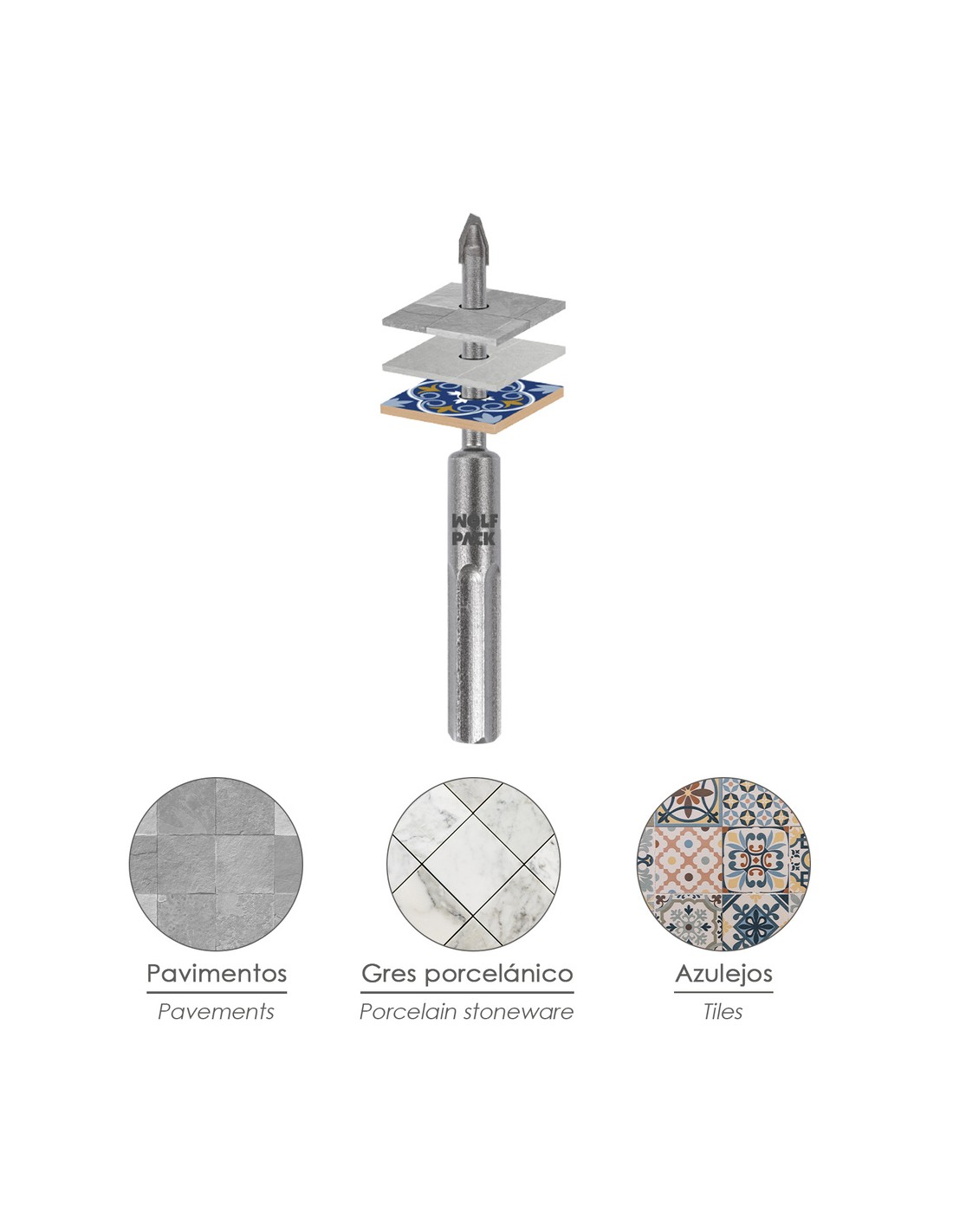 - Medida: Ø 10 mm. Broca diamantada para iniciar el taladrado de materiales duros.