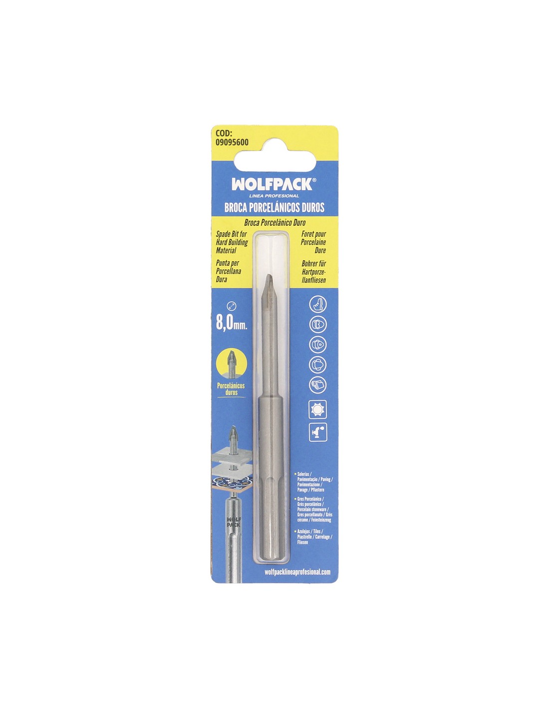 - Aplicación: Para baldosas de gres extremadamente duros con una dureza 9 de Mohs / Ritz y vidrio y porcelana. No es necesaria la refrigeración. No adecuada para el taladrado a percusión.