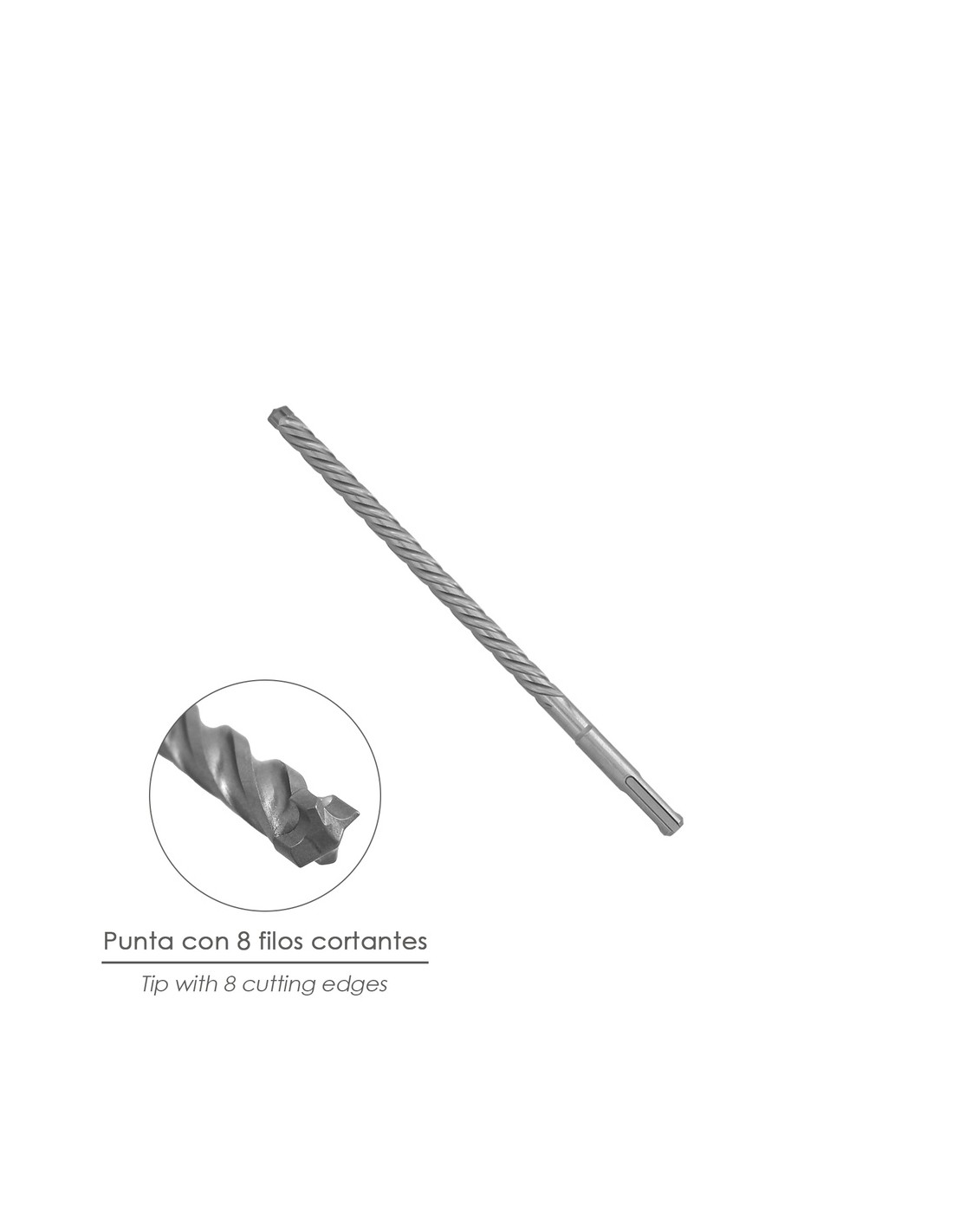 - Broca de alto rendimiento con 8 filos de corte de metal duro integral, especialmente indicado para el taladrado de hormigón armado.