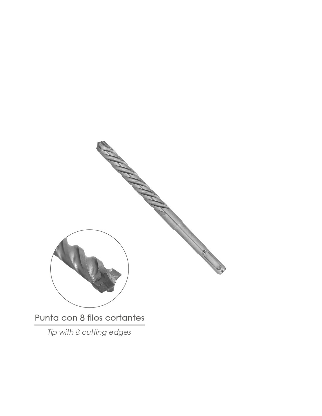 - Broca de alto rendimiento con 8 filos de corte de metal duro integral, especialmente indicado para el taladrado de hormigón armado.