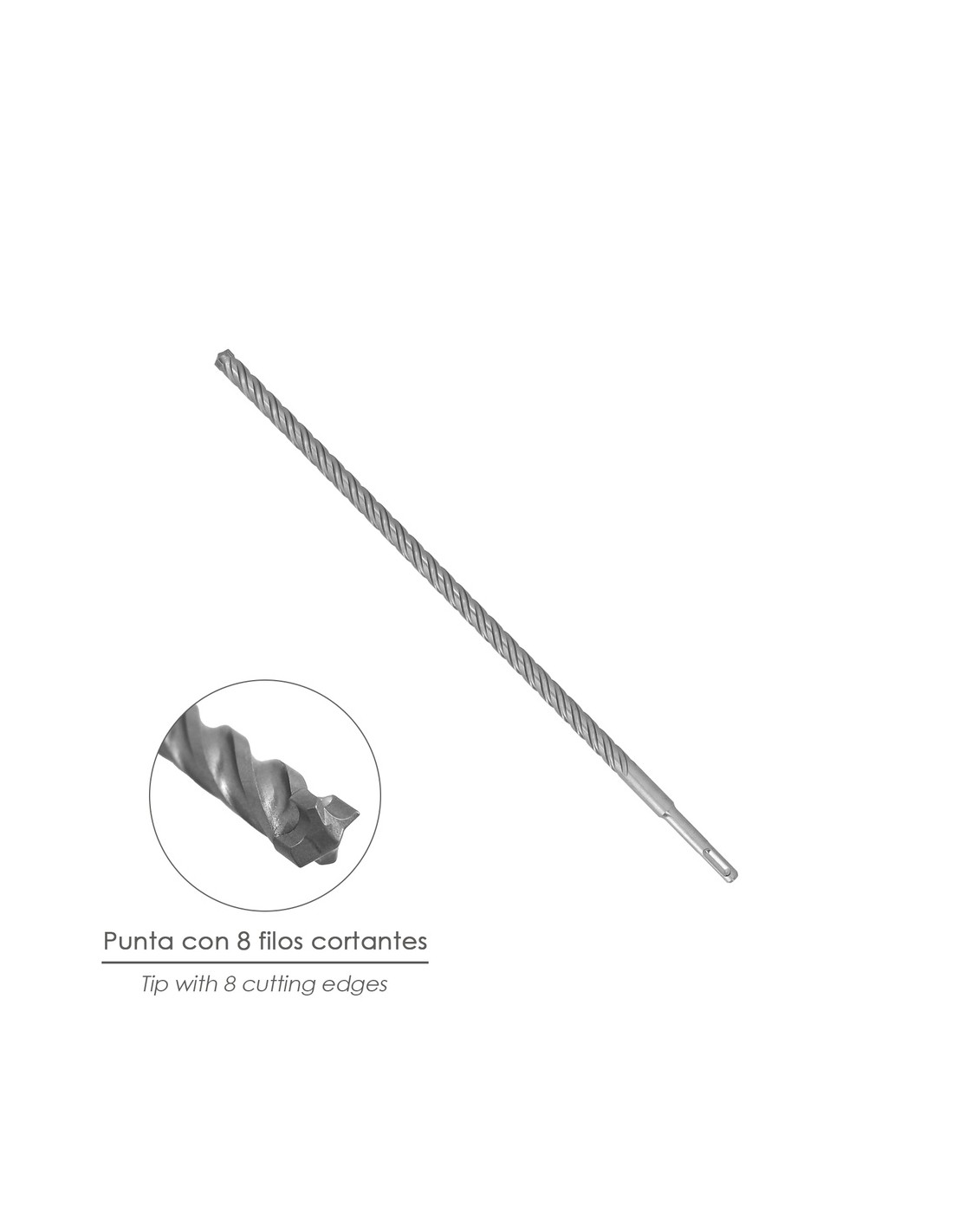 - Broca de alto rendimiento con 8 filos de corte de metal duro integral, especialmente indicado para el taladrado de hormigón armado.
