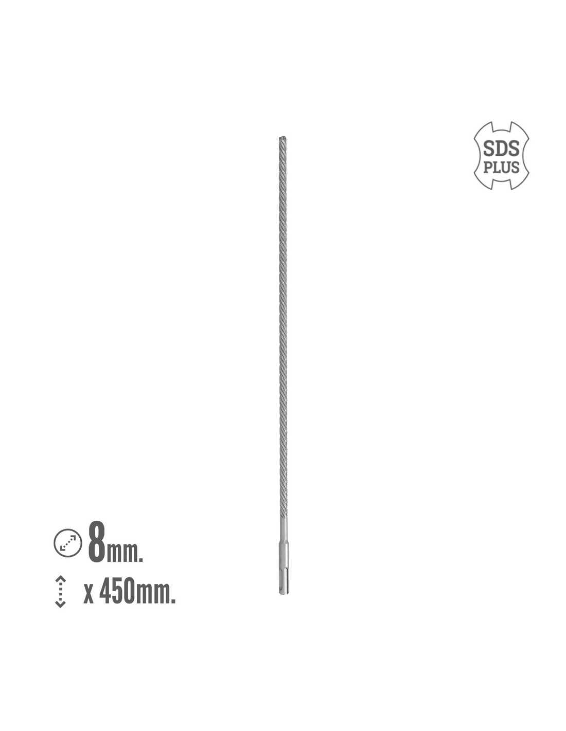 Broca Sds Plus 8 Filos Cortantes Especial Para Hormigon Armado Ø 8 x 450 mm. Broca Paredes, Broca Cimientos, Broca Muros
