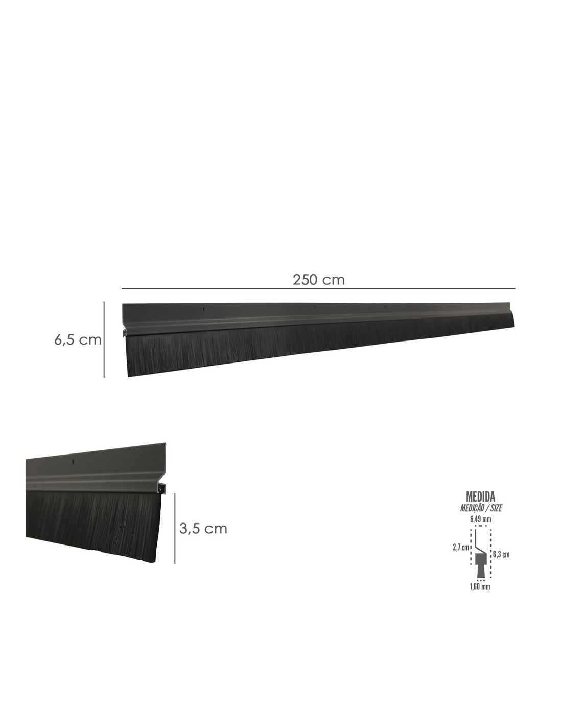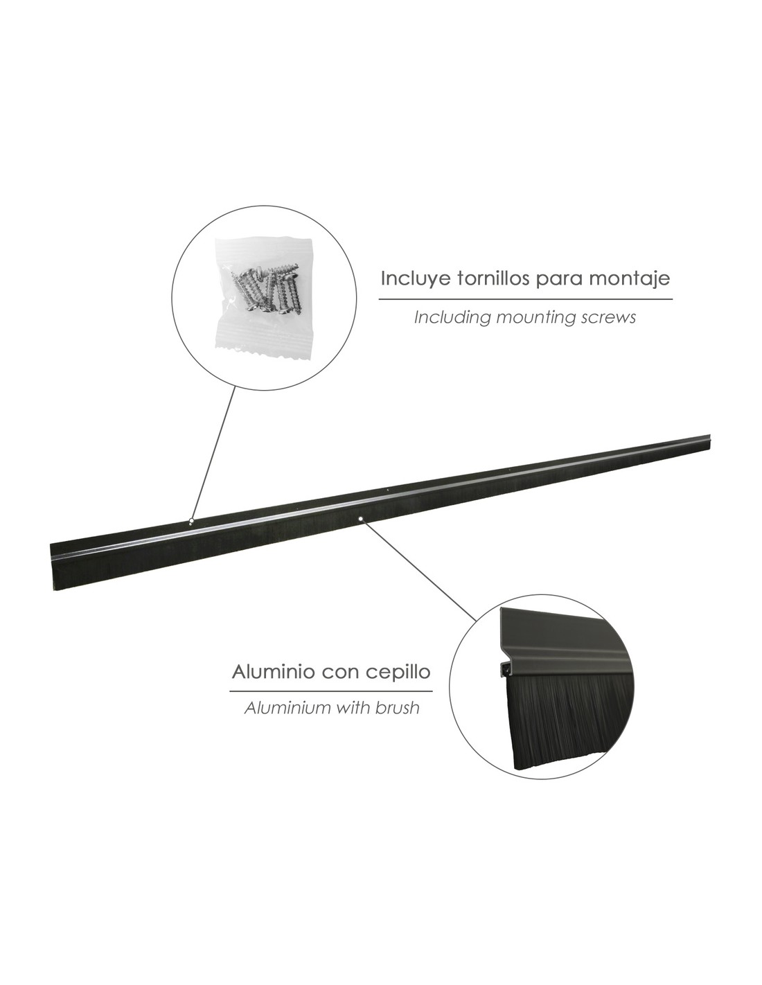 - Producto también conocido como cepillo de puerta, burlete garaje, burlete cepillo cochera.