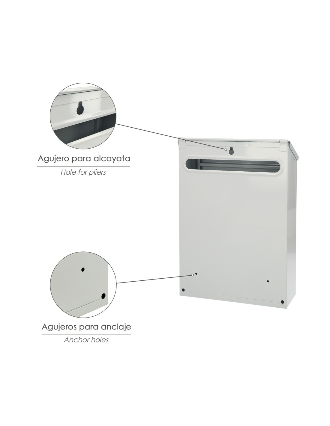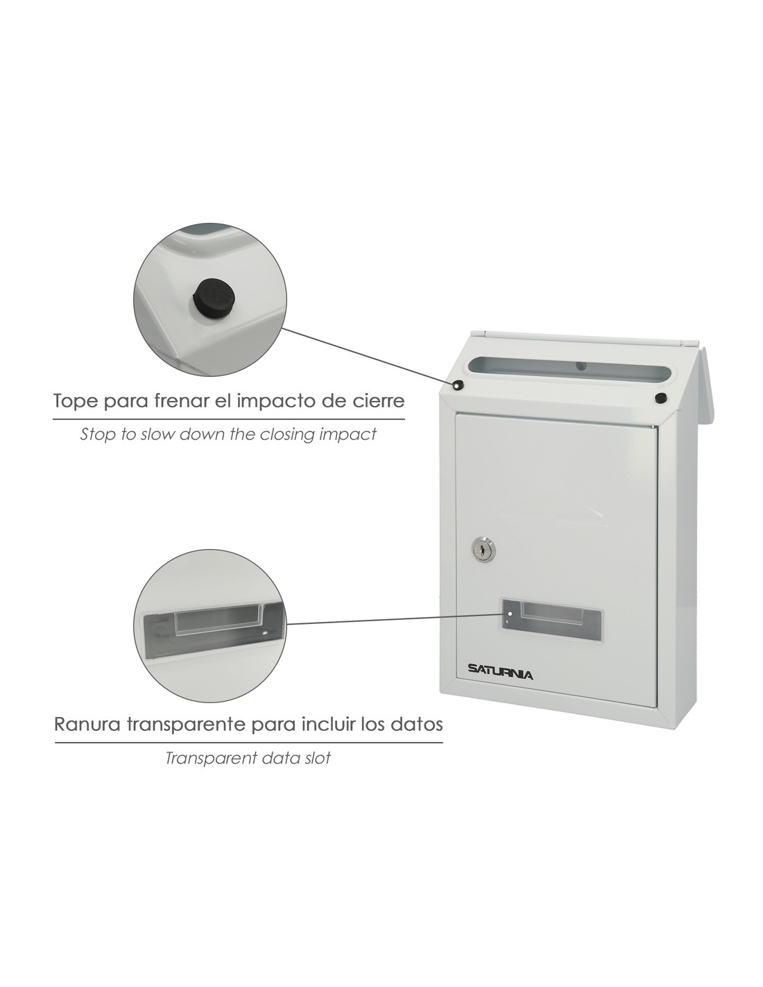 Buzon exterior Residence - Medidas(ancho x alto x fondo): 205 x 300 x 70 mm. - Realizado en metal. - Color blanco. - Con cerradura y juego de llaves. - Con visor transparente.