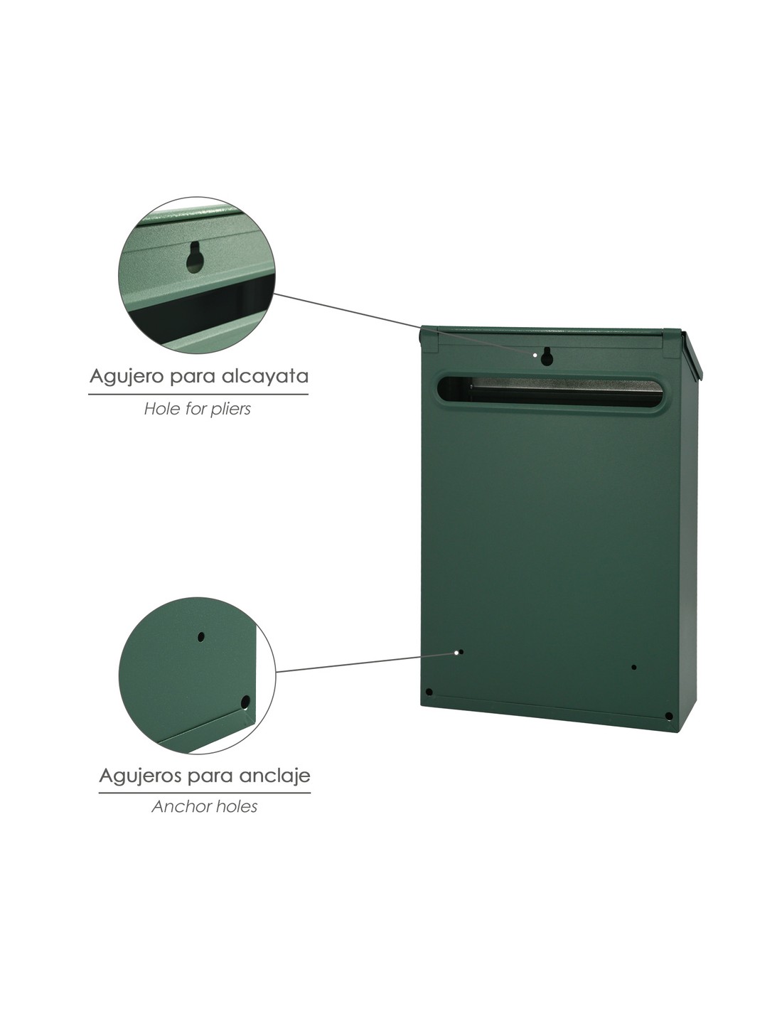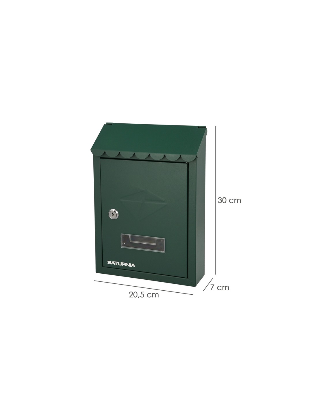 Buzon exterior Residence - Medidas(ancho x alto x fondo): 205 x 300 x 70 mm. - Realizado en metal. - Color verde. - Con cerradura y juego de llaves. - Con visor transparente.