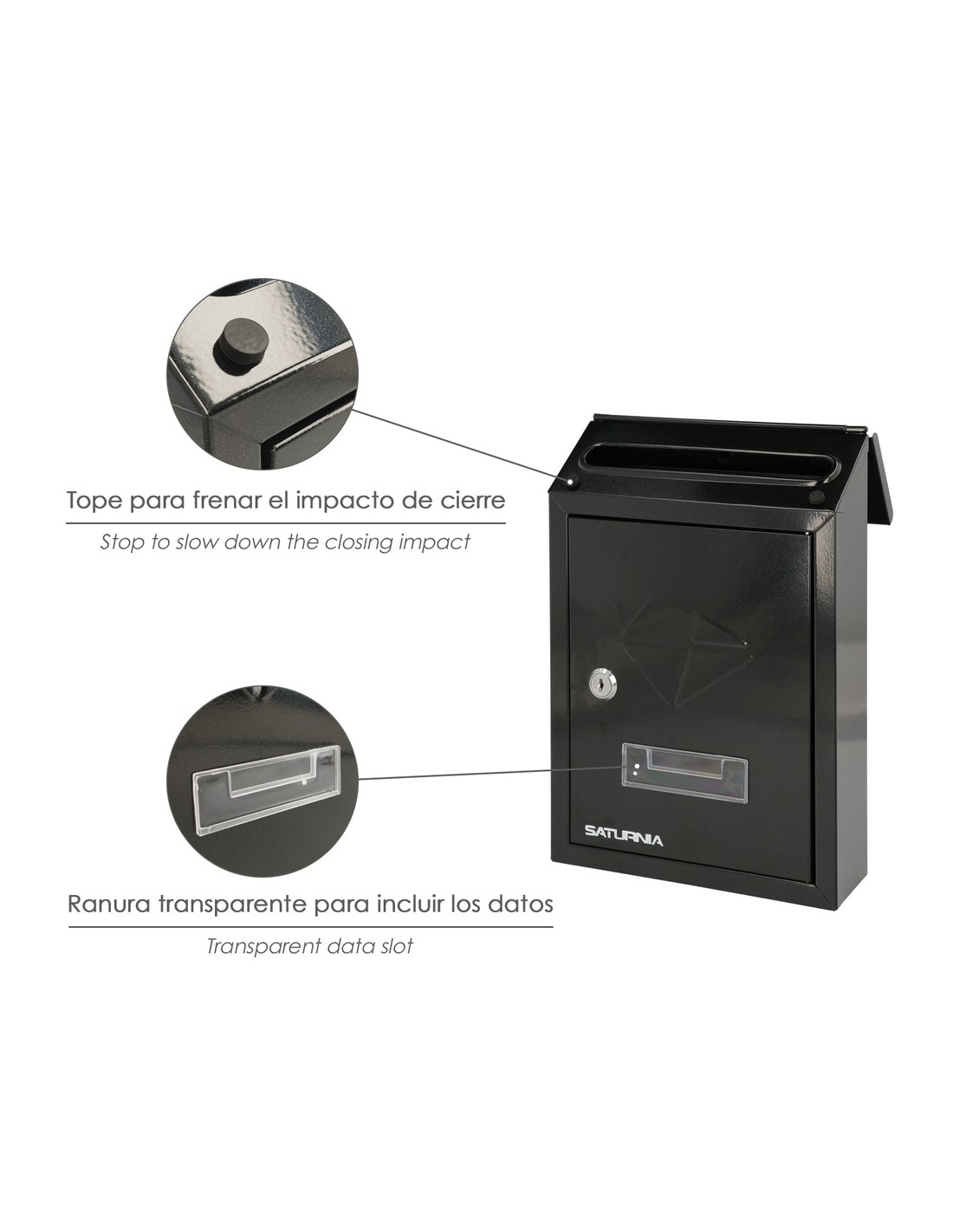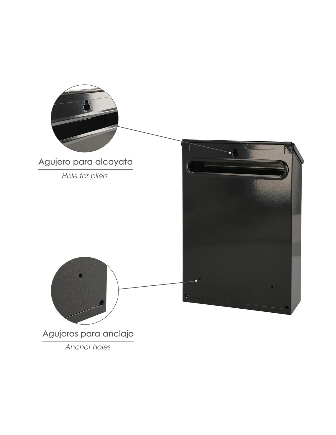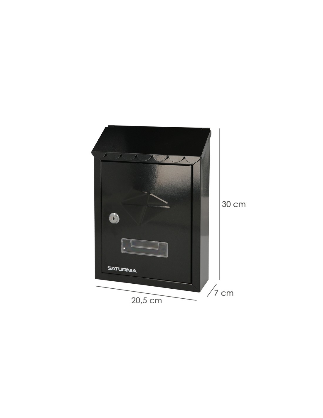 Buzón exterior Residence - Medidas(ancho x alto x fondo): 205 x 300 x 70 mm. - Realizado en metal. - Color negro. - Con cerradura y juego de llaves. - Con visor transparente.