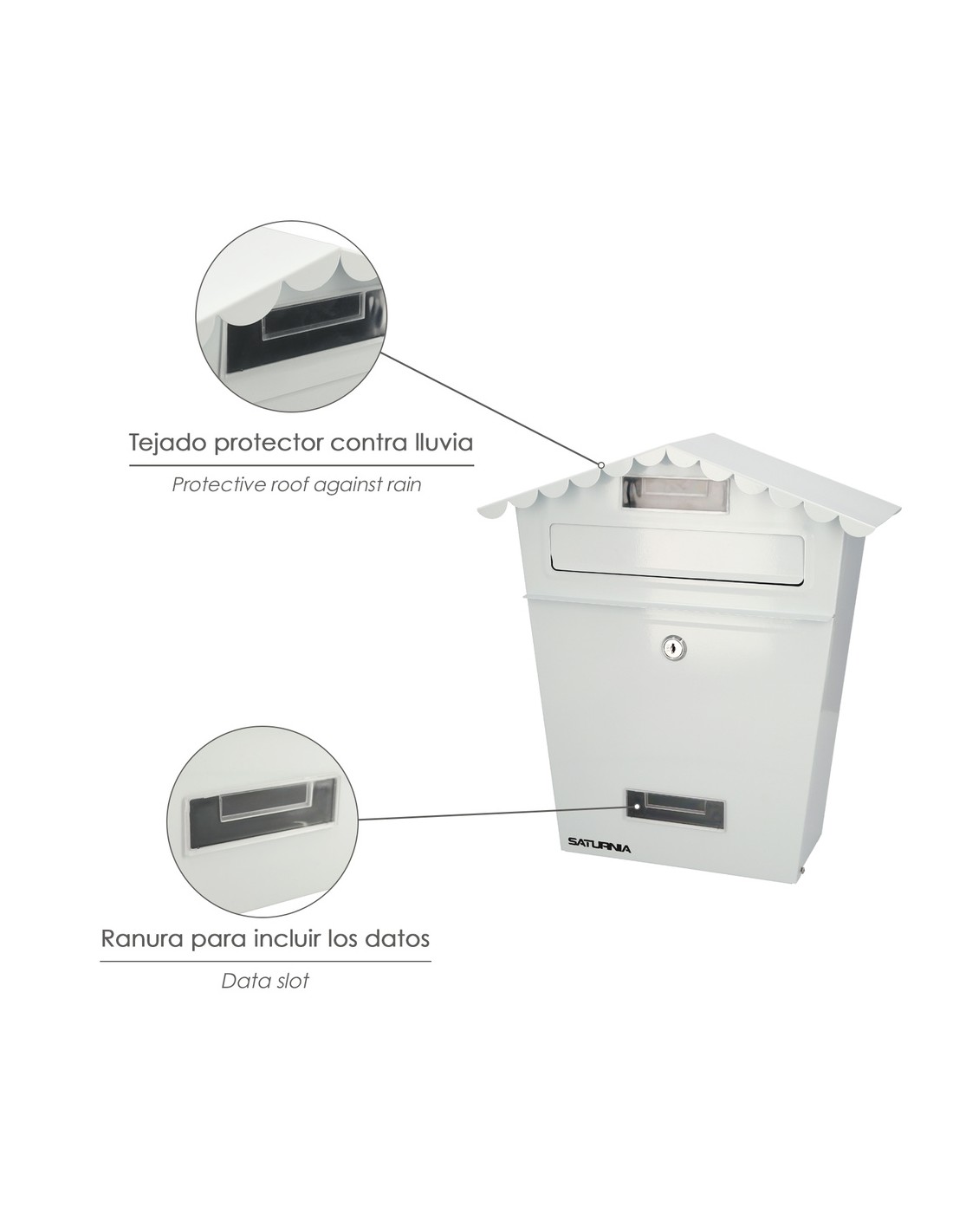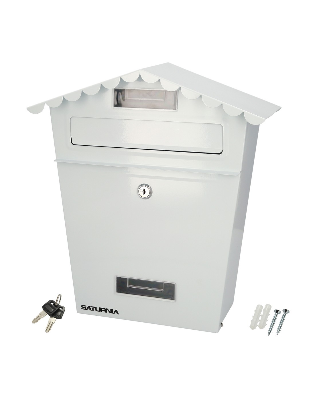Buzon Exteriores House Blanco 330 x 125 x 365 (Alt.) mm. Con Tejado, Acero Pintado. Buzon Pared, Buzon Cartas, Buzon Correos