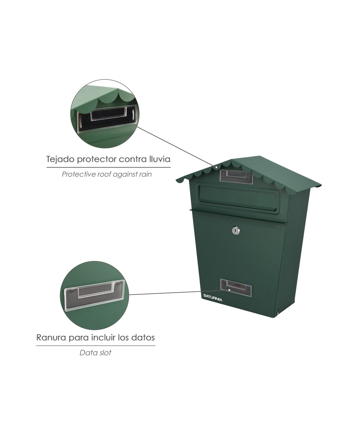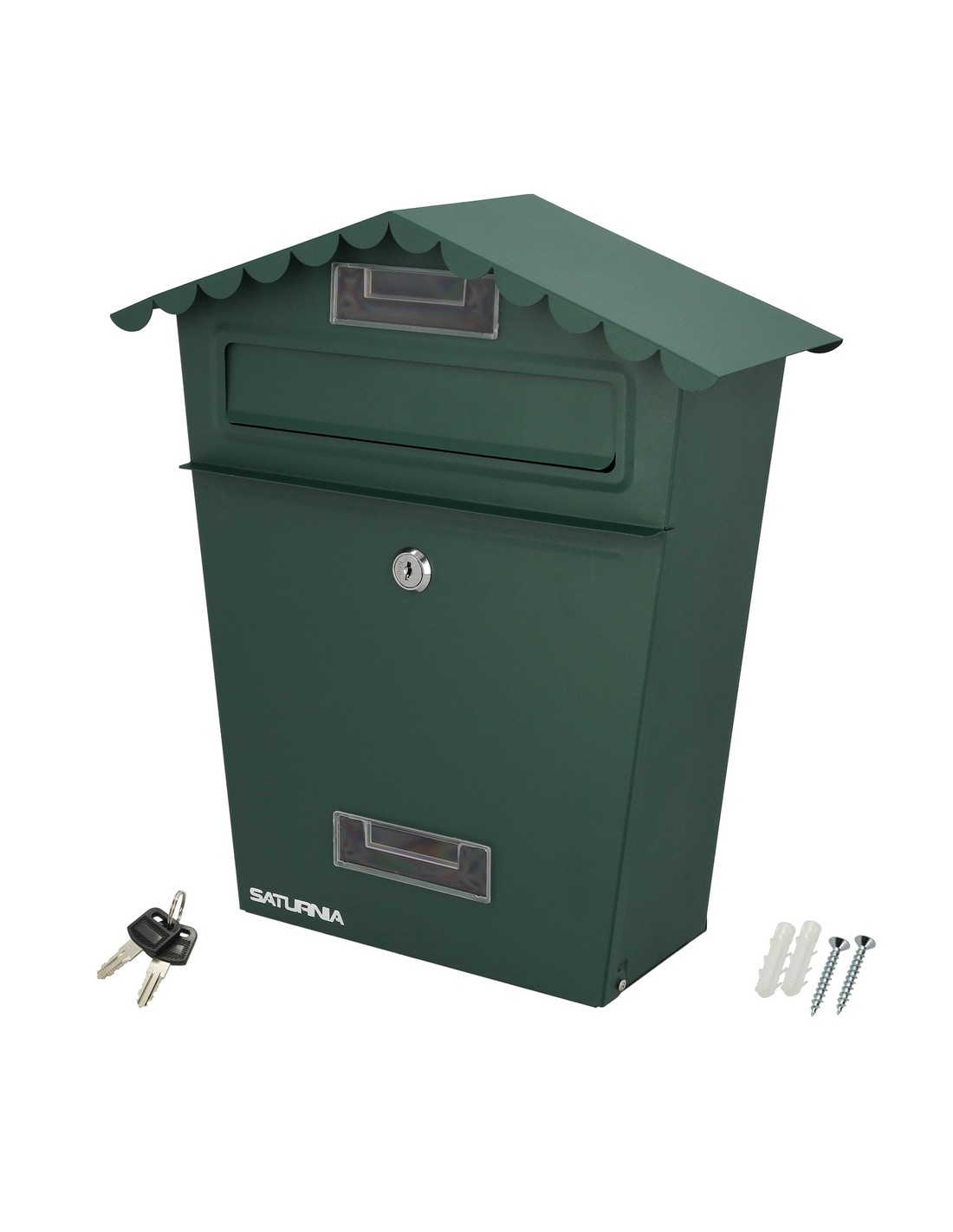 Buzon Exteriores House Verde 330 x 125 x 365 (Alt.) mm. Con Tejado, Acero Pintado. Buzon Pared, Buzon Cartas, Buzon Correos