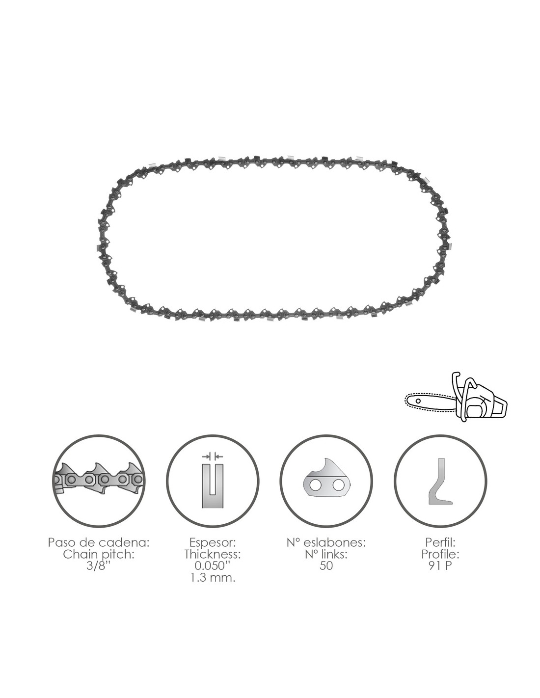Cadena Motosierra 3/8" / 0.050" 1,3 mm. / 50 Eslabones / 91 P