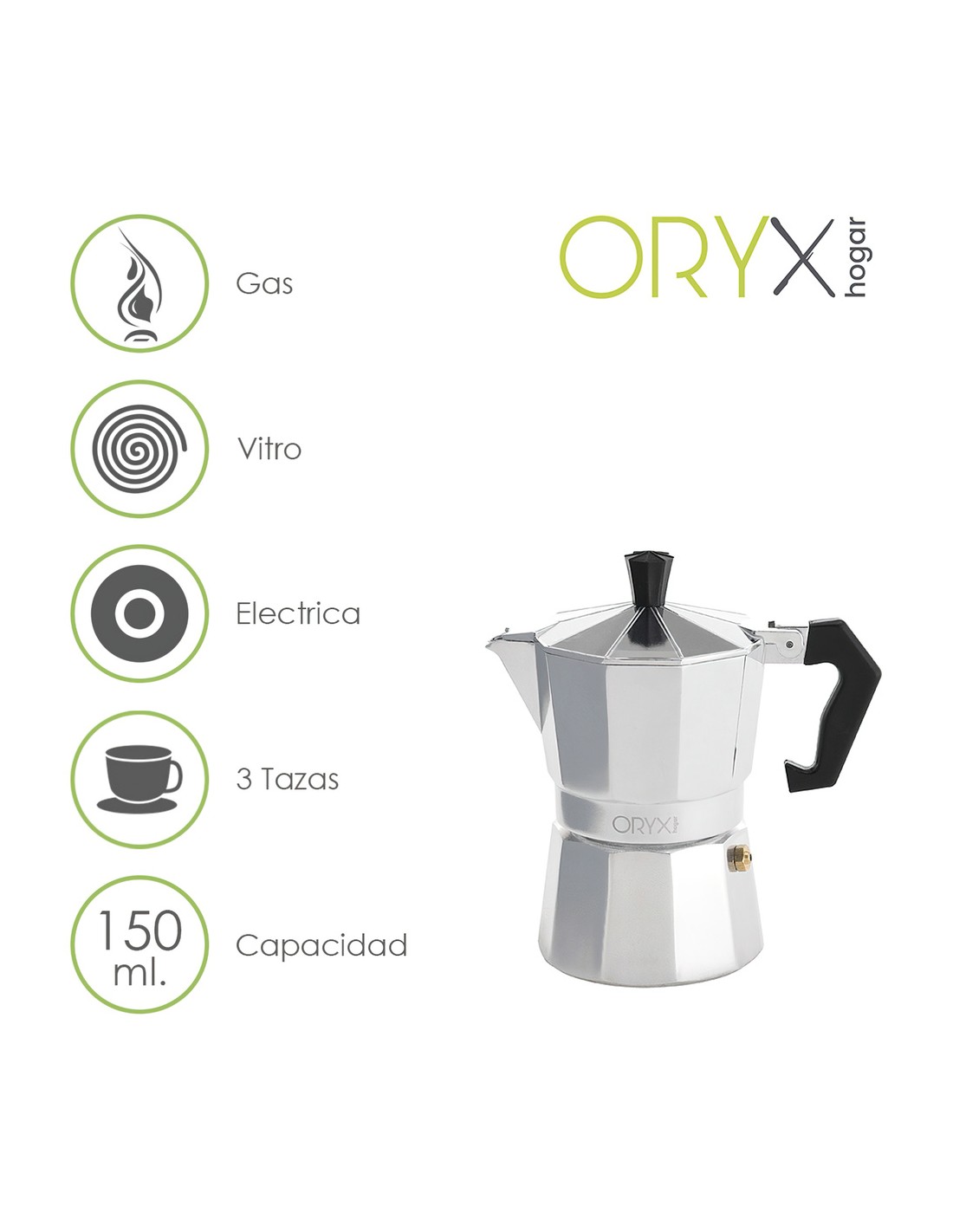 - Capacidad para 3 tazas de café (150 ml.)