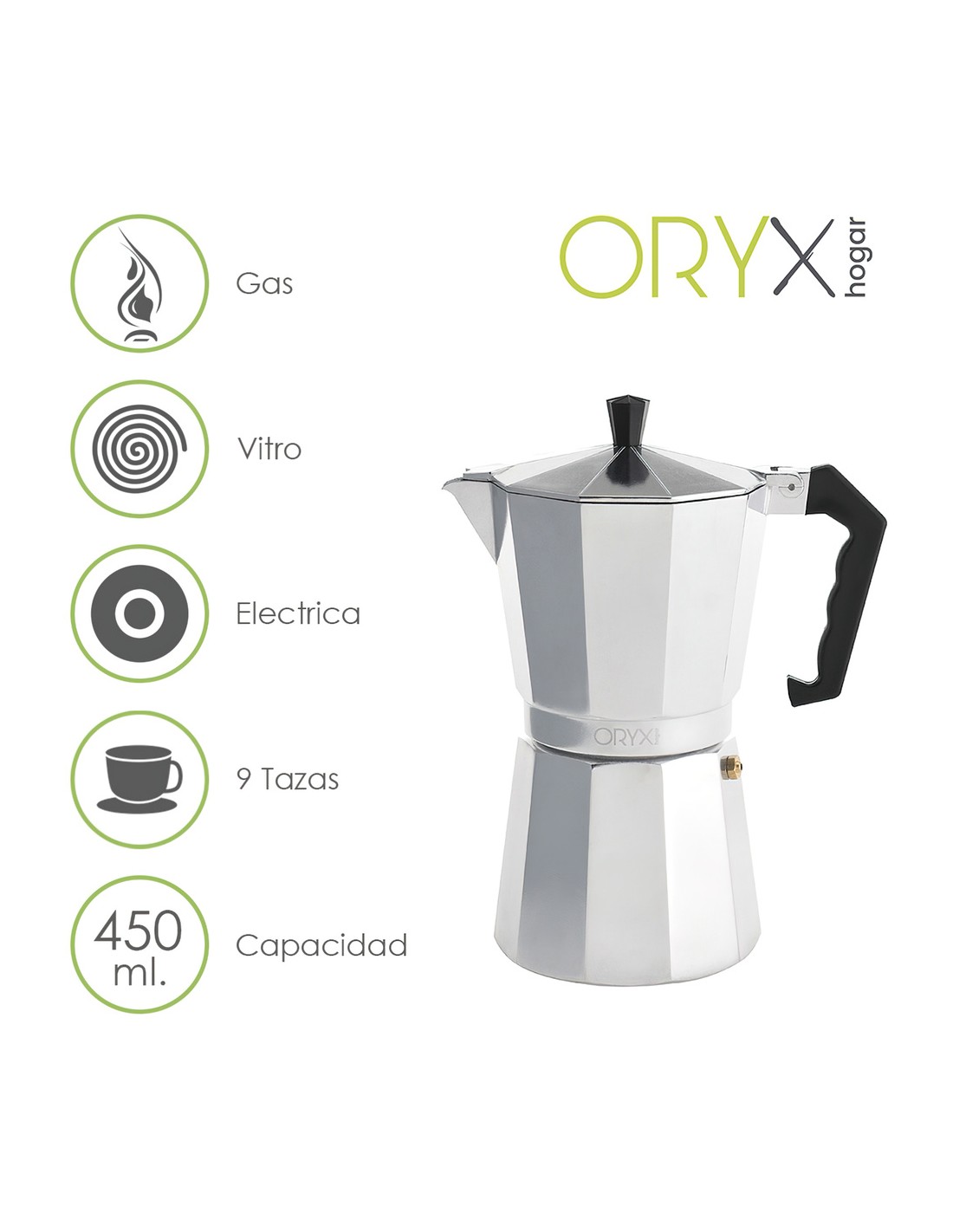 - Capacidad para 9 tazas de café (450 ml.)