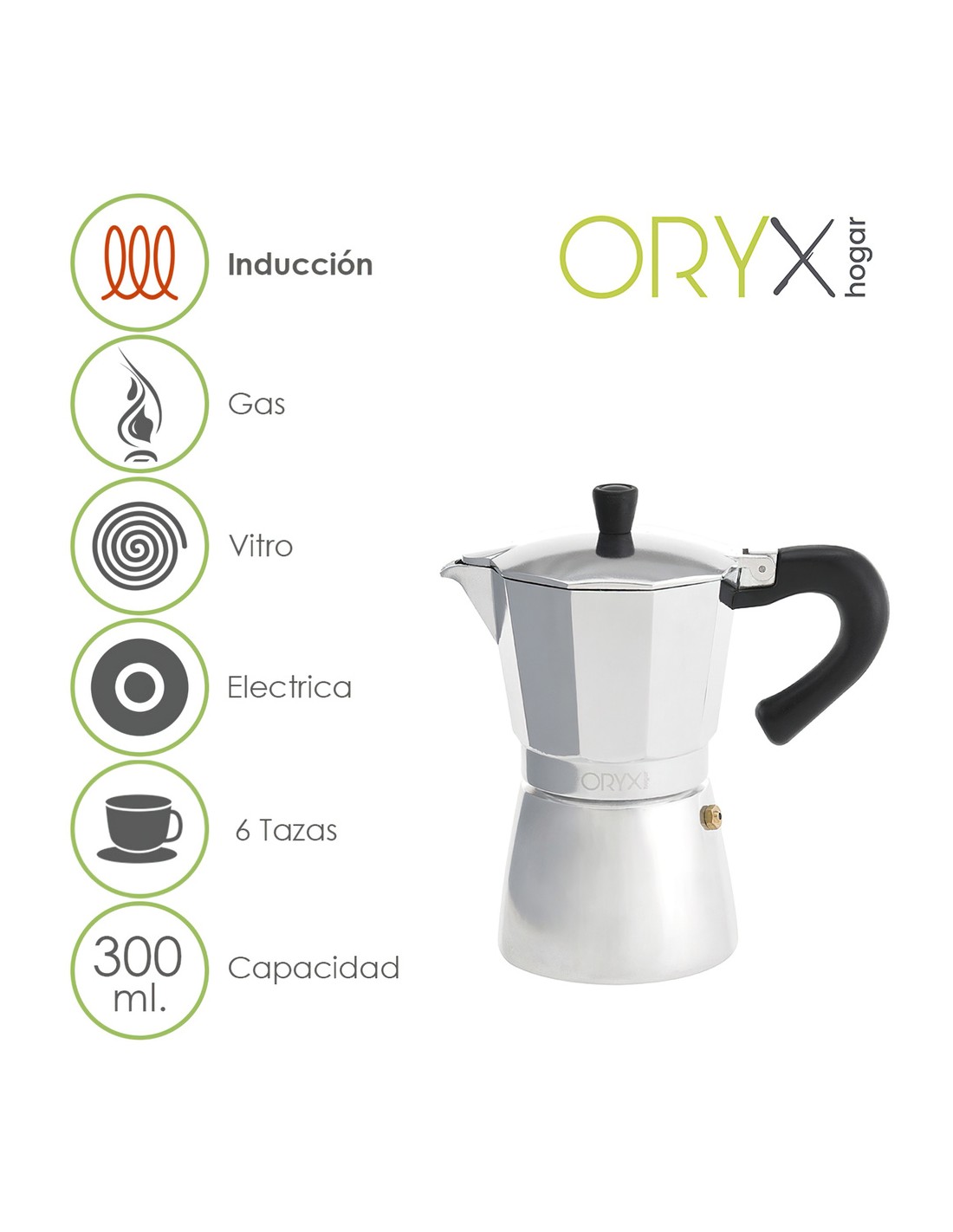 Cafetera Inducción Aluminio 6 Tazas (300 Ml.)