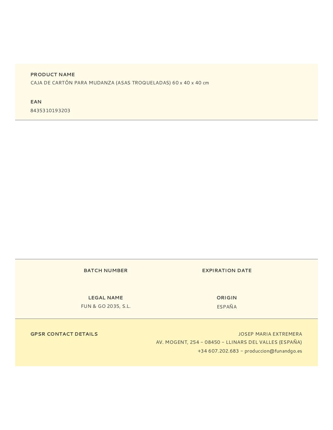 CAJA DE CARTON PARA MUDANZA (ASA TROQUELADA) 60X40X40CM FUN & GO FUN AND GO