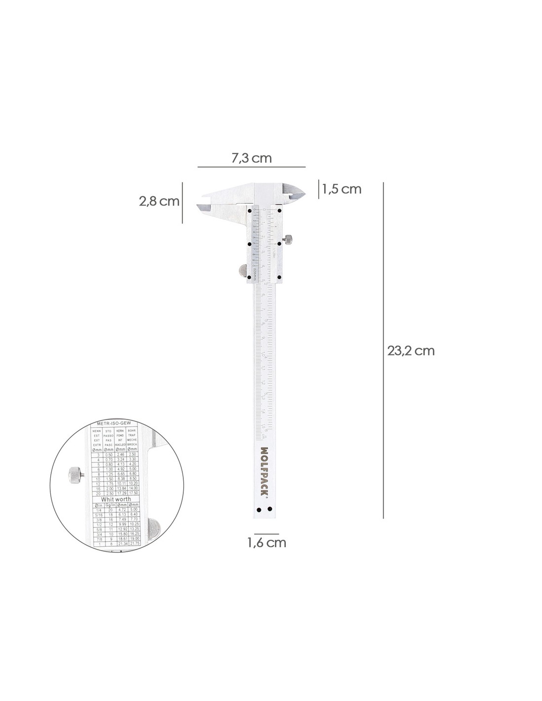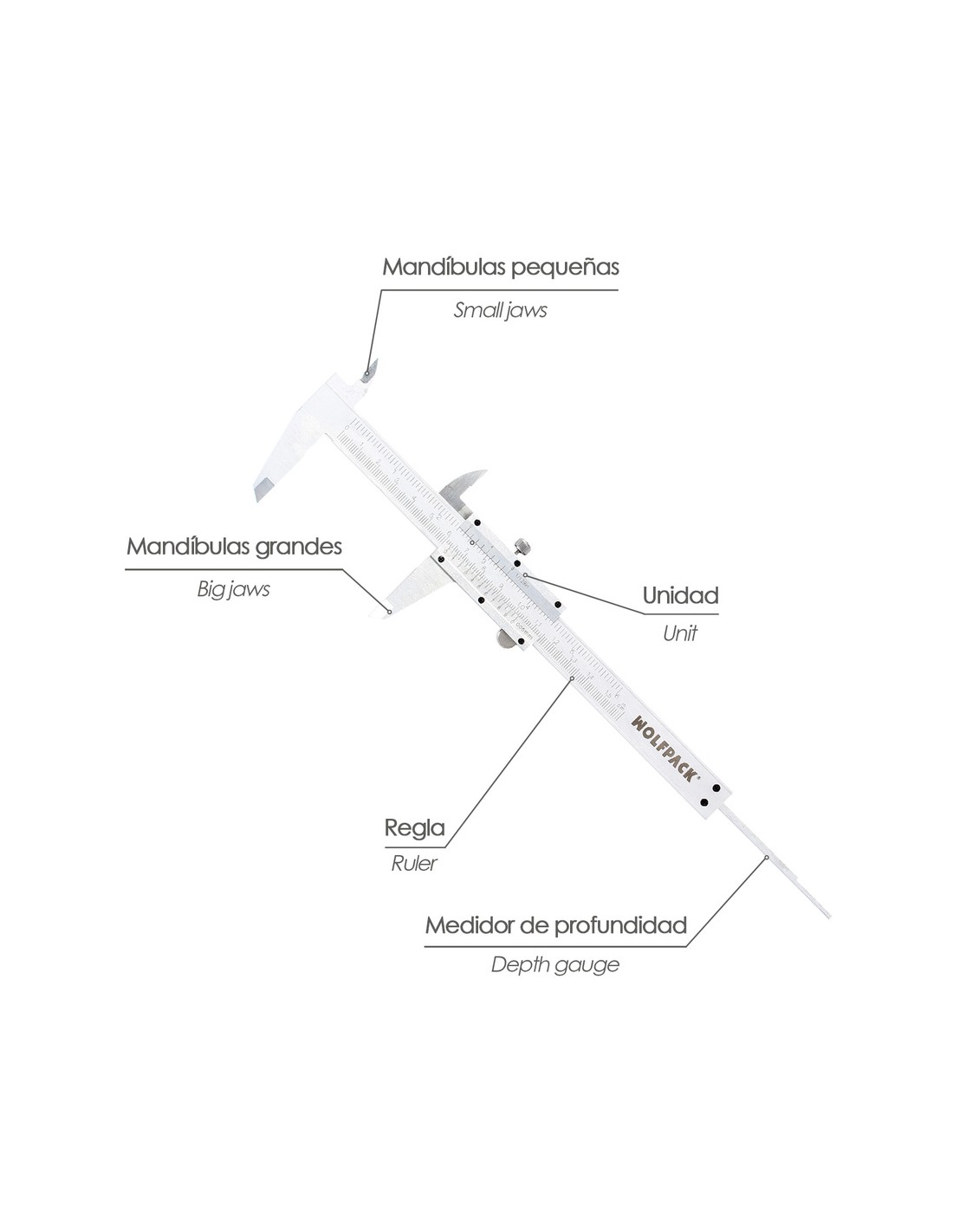 - El medido de profundidad está integrado en el calibre.