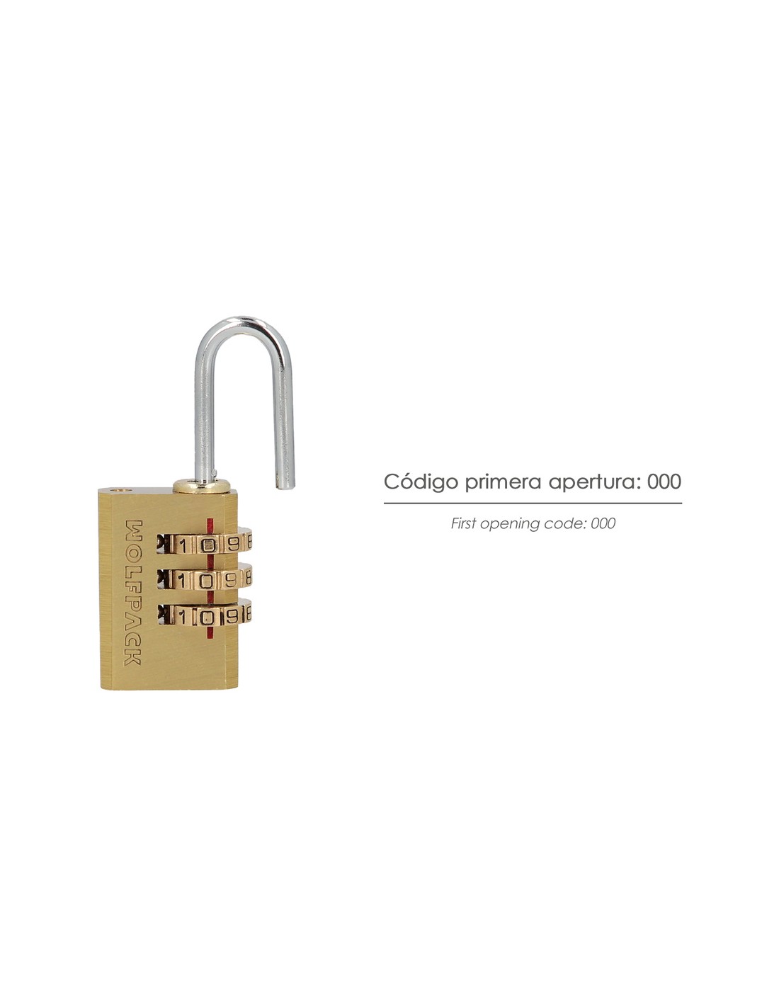 - Código por defecto: 000, fácil de configurar y restablecer. Abrir el candado, girar 180º, bajarlo, elegir combinación colocando los número en la línea de referencia.