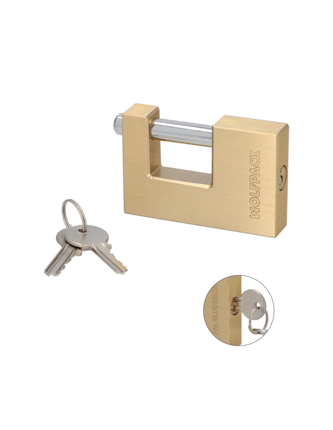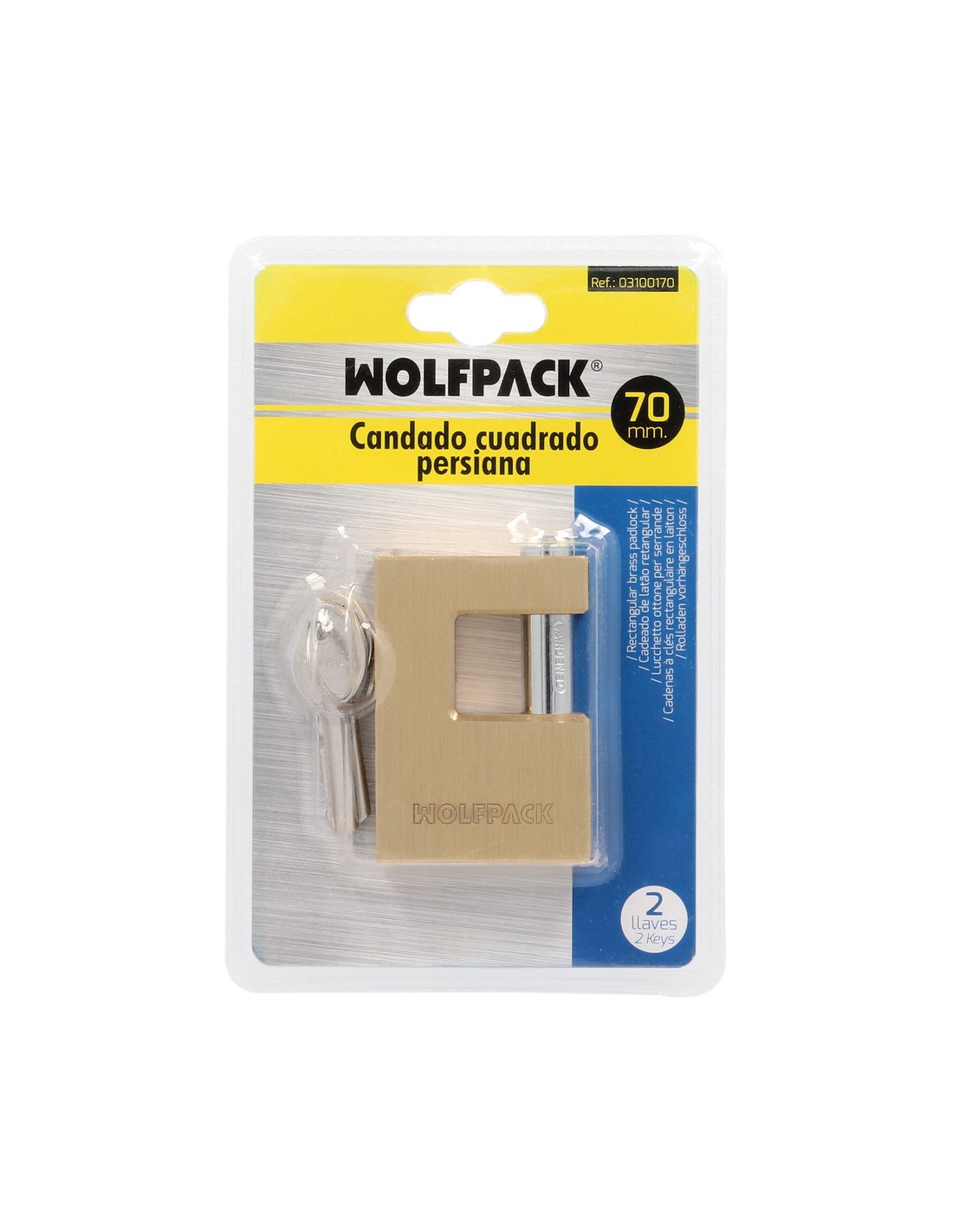 Candado Cuadrado Latón Persiana Ancho 70 mm. Alta Seguridad, Antirrobo Puertas, Contenedores, Trasteros, 2 Llaves