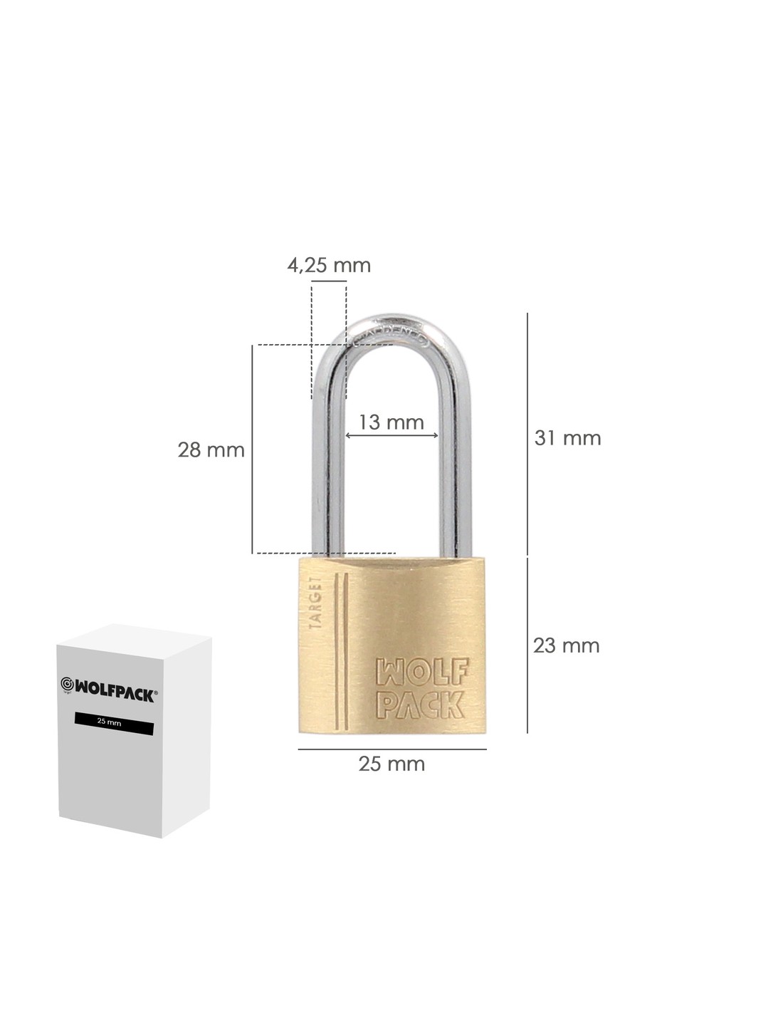 Candado Laton Arco Largo 25 mm.