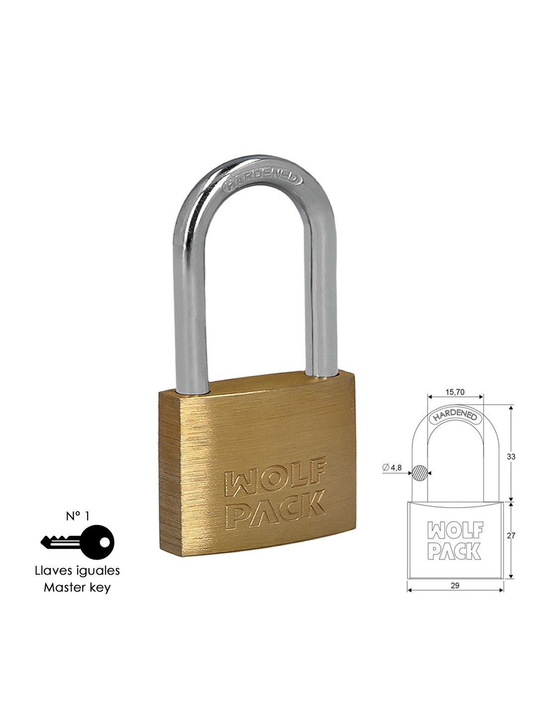 Candado Laton Arco Largo Llaves Iguales 30 mm. Nº1
