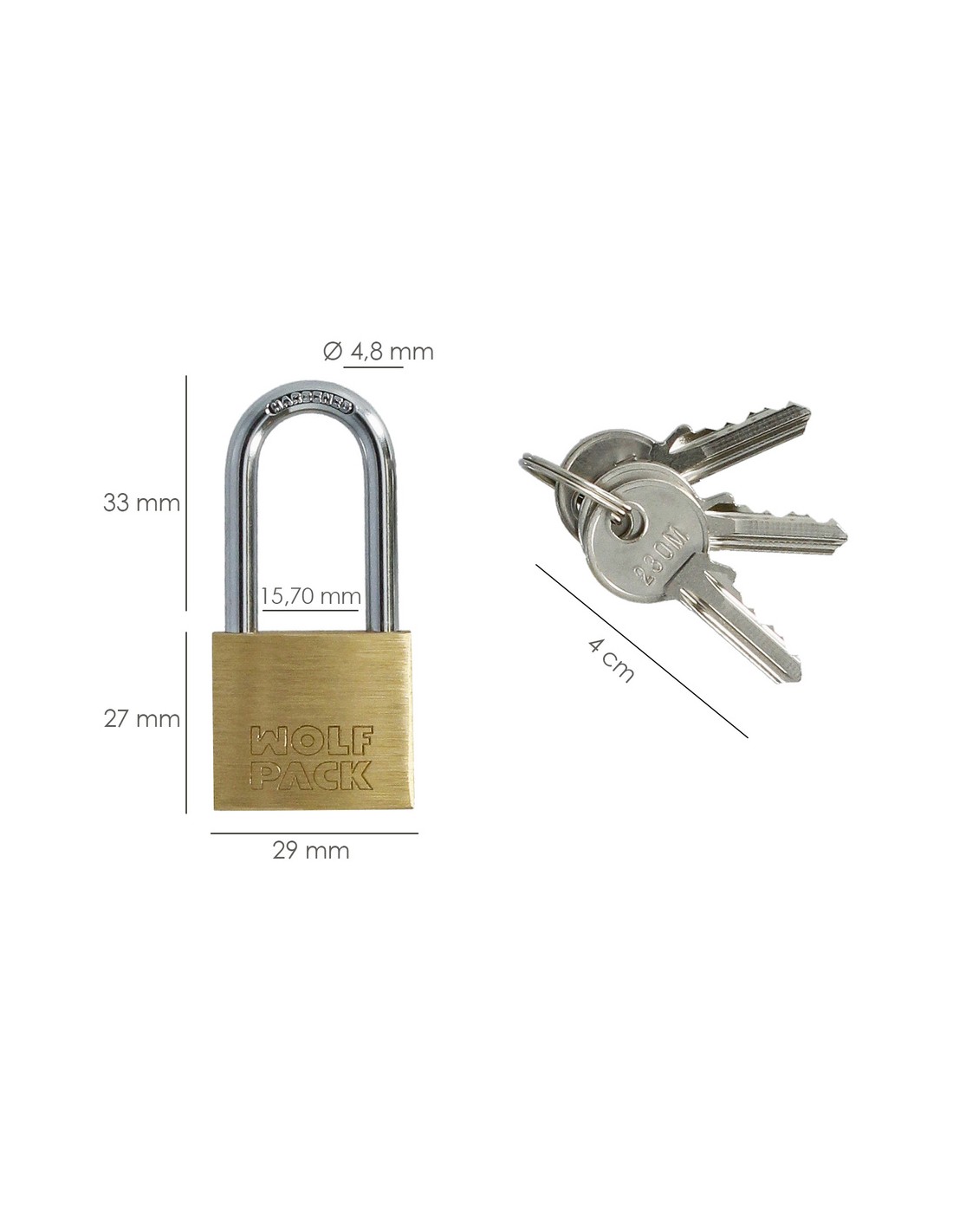 Candado laton arco largo llaves iguales nº2.