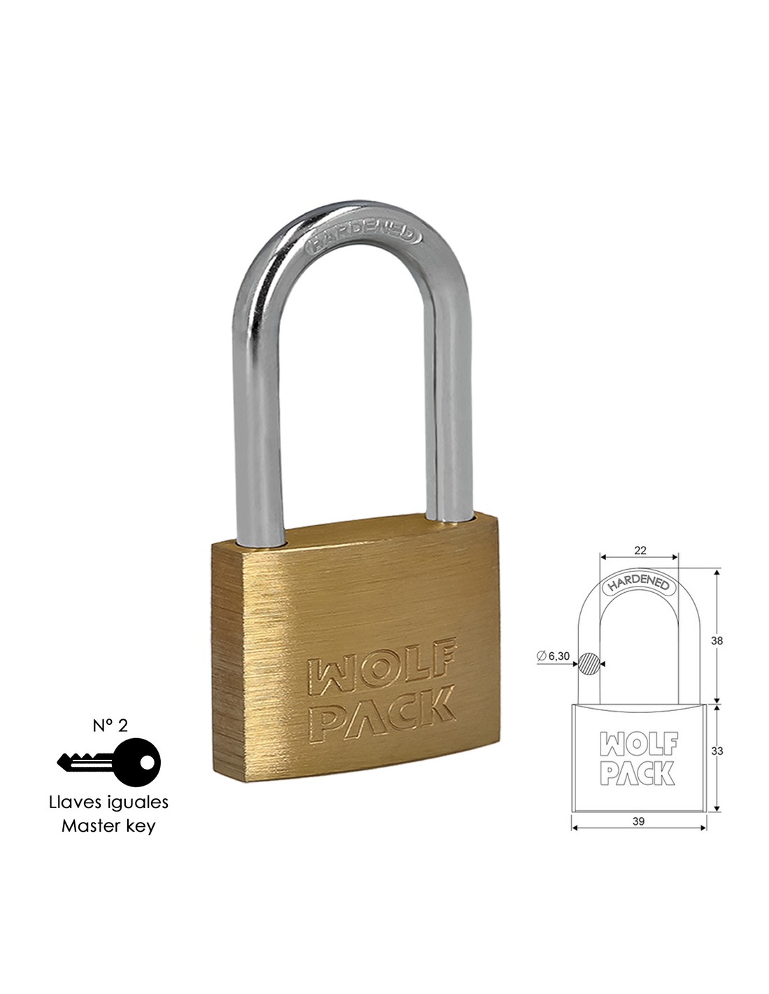 Candado Laton Arco Largo Llaves Iguales 40 mm. Nº2
