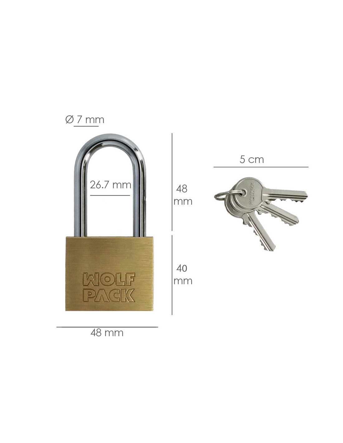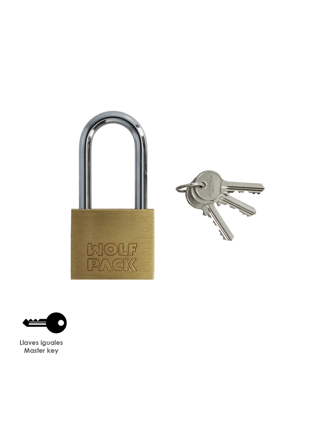 Candado laton arco largo llaves iguales nº1.