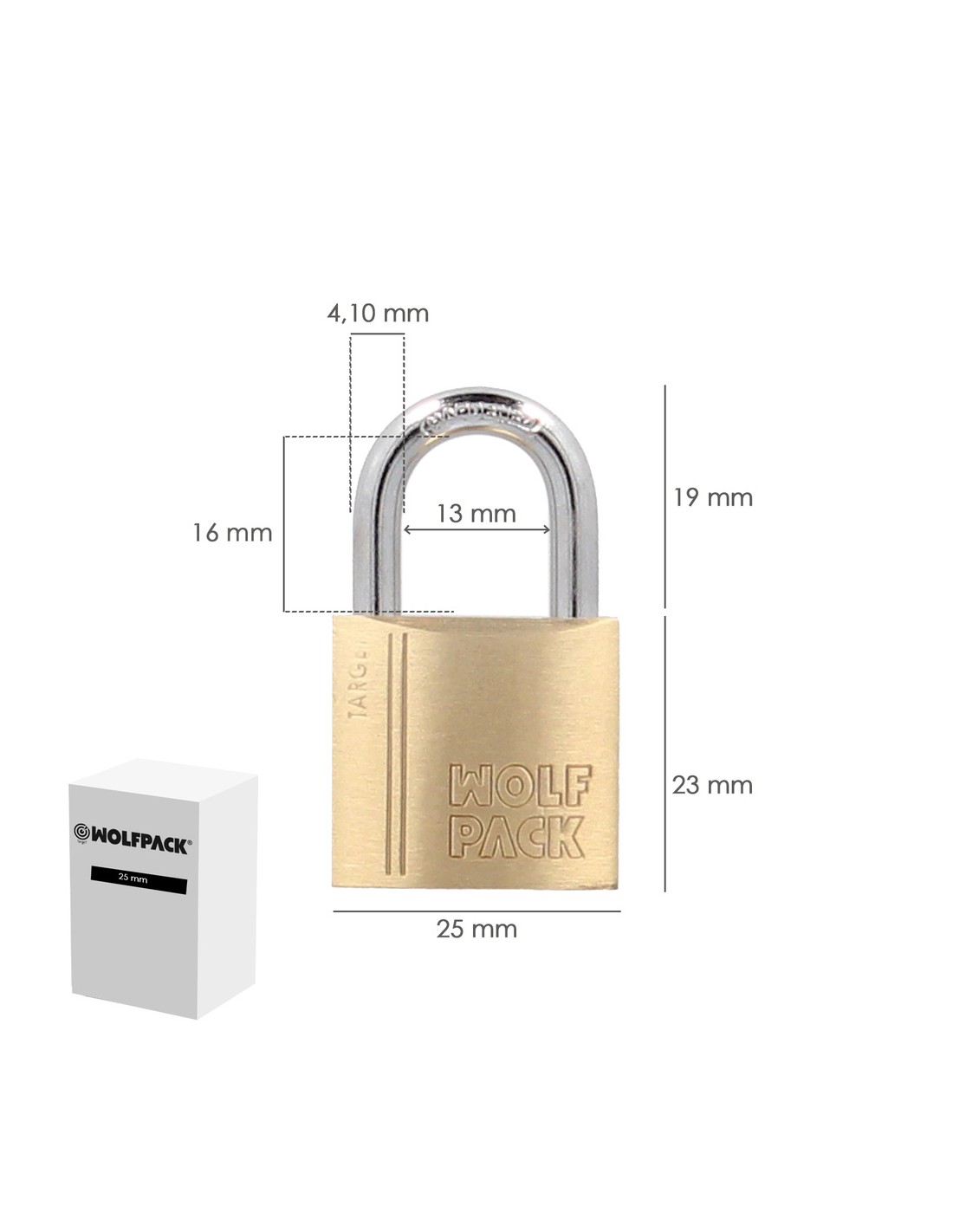 Candado Laton Arco Normal 25 mm. Serie Target. Arco Endurecido. Candado Maletas, Candado Taquillas, Candado Puertas