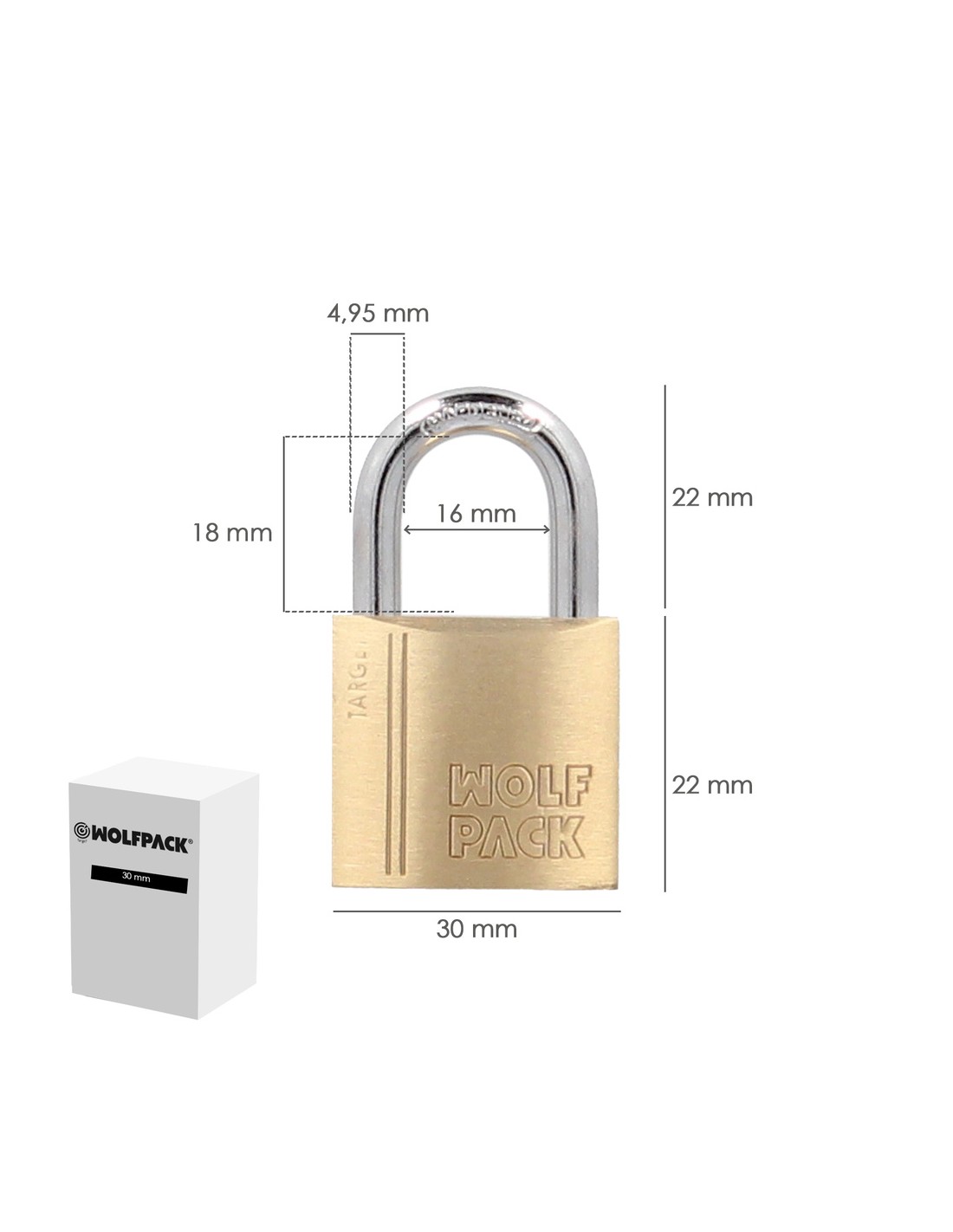 Candado Laton Arco Normal 30 mm. Serie Target. Arco Endurecido. Candado Maletas, Candado Taquillas, Candado Puertas