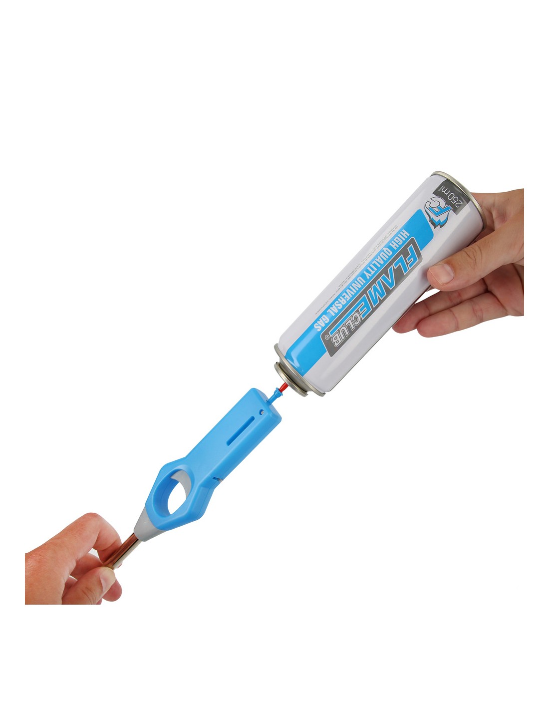 - Instrucciones de uso: ponga la botella de gas boca abajo con la boquilla apropiada. Coloque la válvula en la válvula de relleno y presione de 2 a 3 veces. Esperar 15 segundos para usar el mechero.
