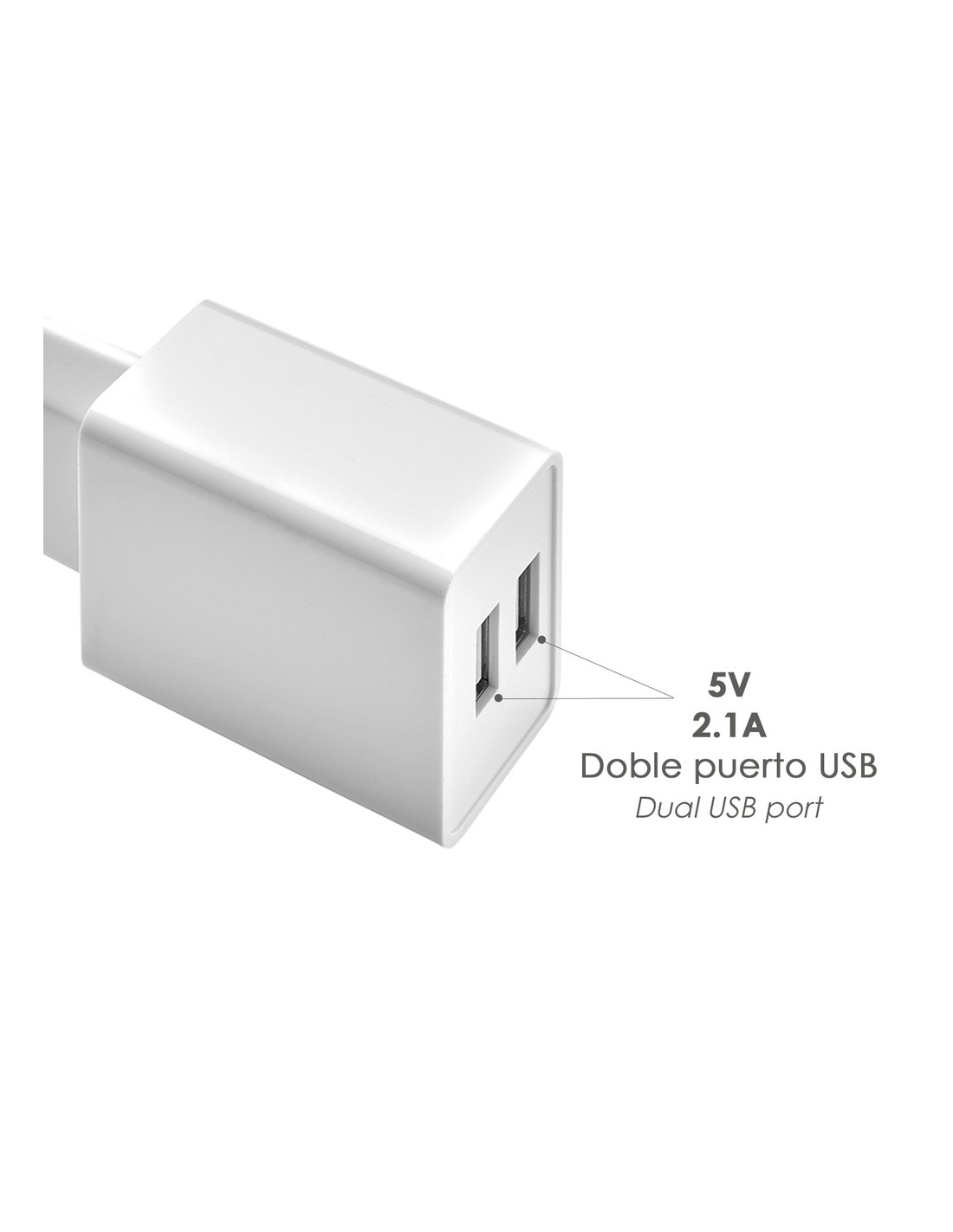- 2 puertos USB con los que puede cargar 2 dispositivos al mismo tiempo.