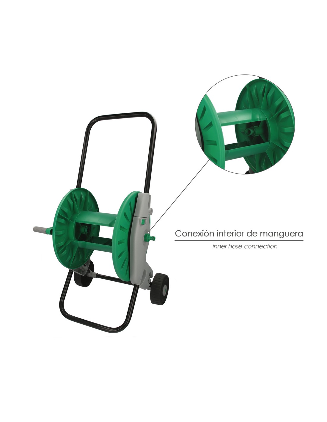 - Puede recoger hasta 60 metros de manguera de 1/2"