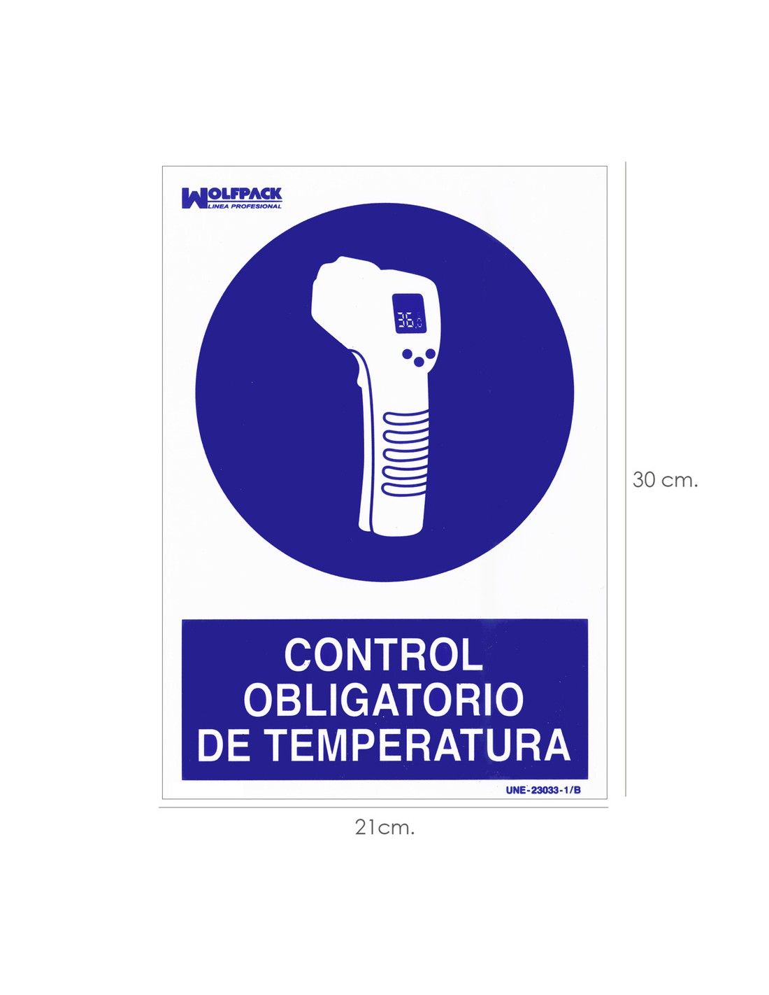 Cartel Control Obligatorio Temperatura - Medida 30 x 21 cm. - Realizado en plastico. - Apto para interior y exterior. - Articulo también conocido como: carteles, rotulos, señales.