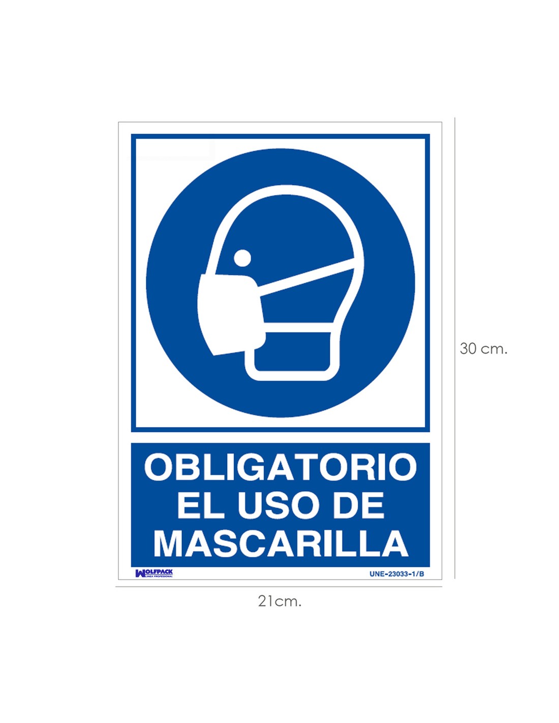 Cartel Obligatorio Uso Mascarilla - Medida 30 x 21 cm. - Realizado en plastico. - Apto para interior y exterior. - Articulo también conocido como: carteles, rotulos, señales.