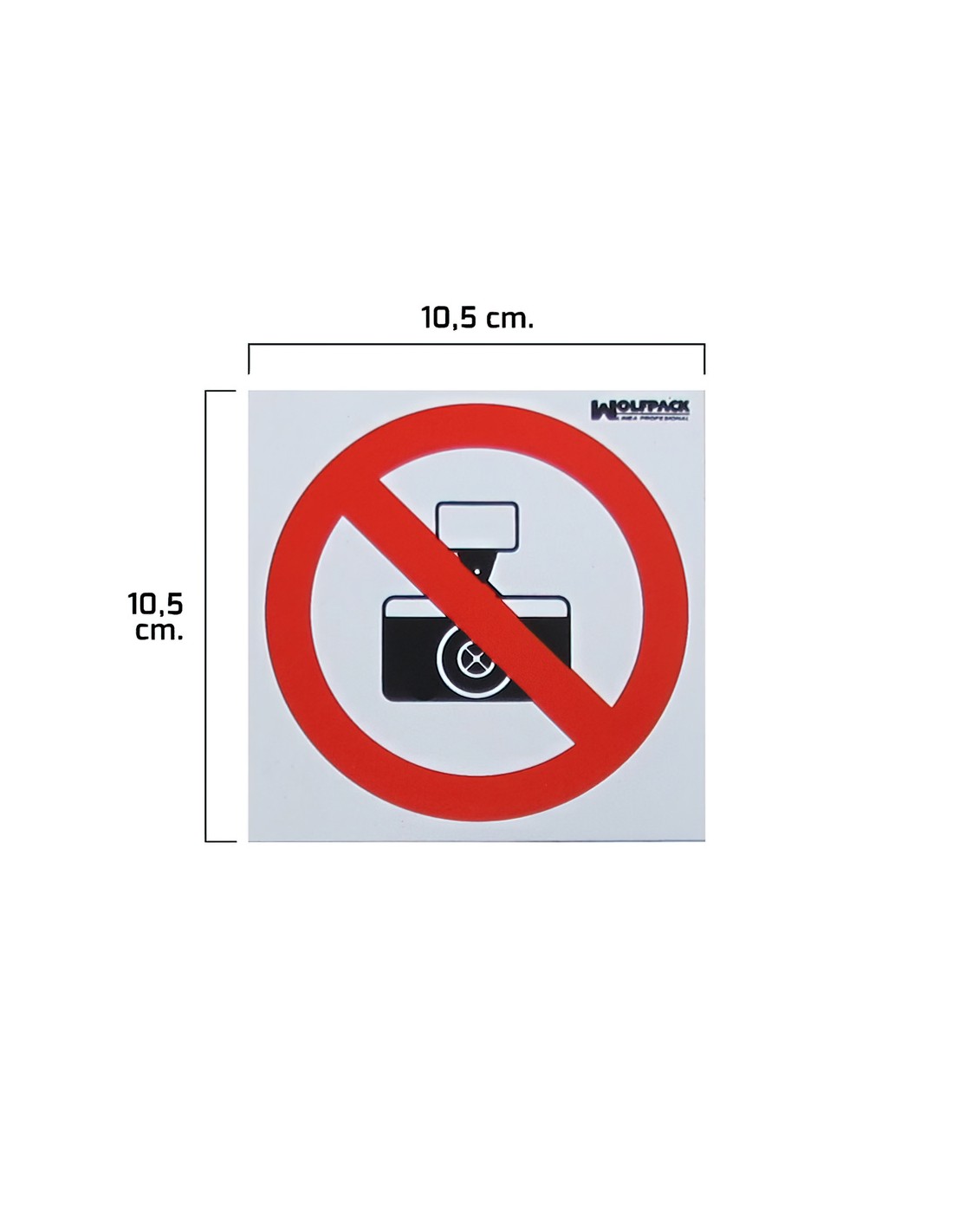 Cartel Prohibido hacer fotografias - Medida: 10,5x 10,5 cm. - Fabricado bajo norma UNE 23035/4. - Realizado en plastico. - Articulo también conocido como: carteles, rotulos, señales.