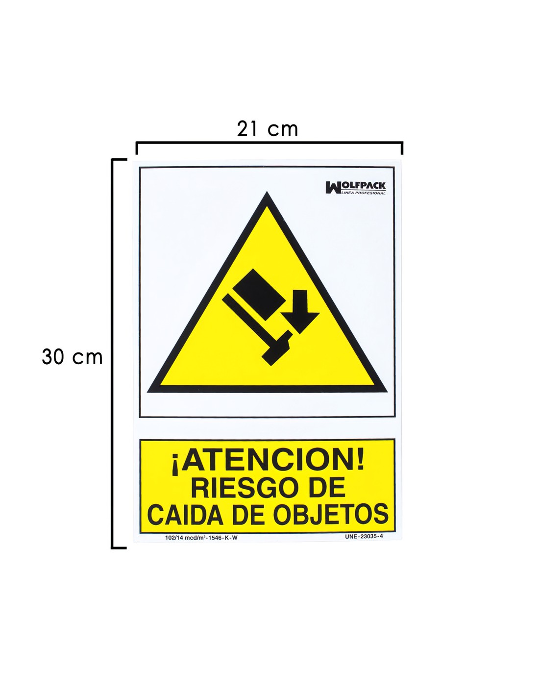 Cartel Riesgo Caida De Objetos. - Medida 30 x 21 cm. - Realizado en plastico. - Apto para interior y exterior. - Articulo también conocido como: carteles, rotulos, señales.