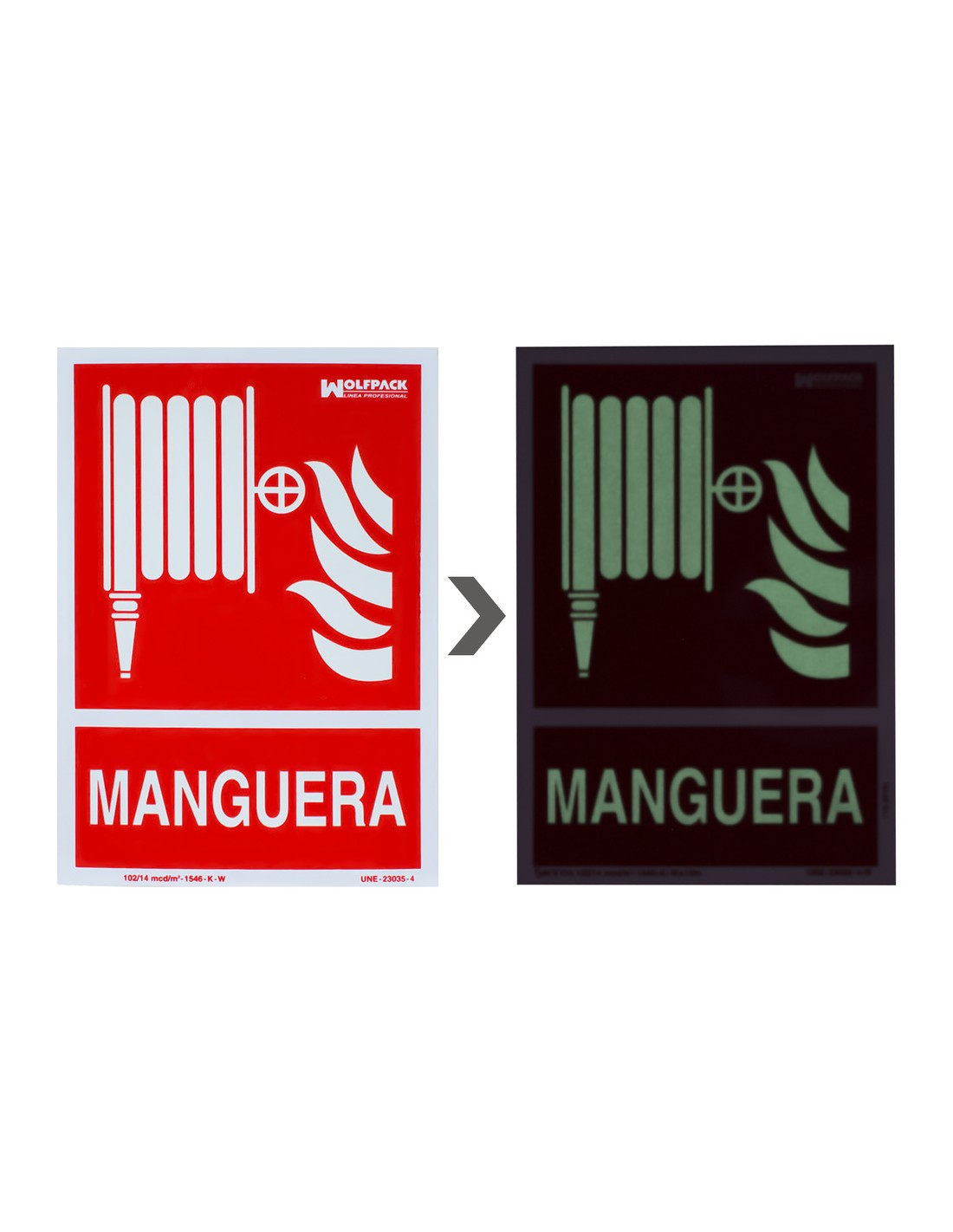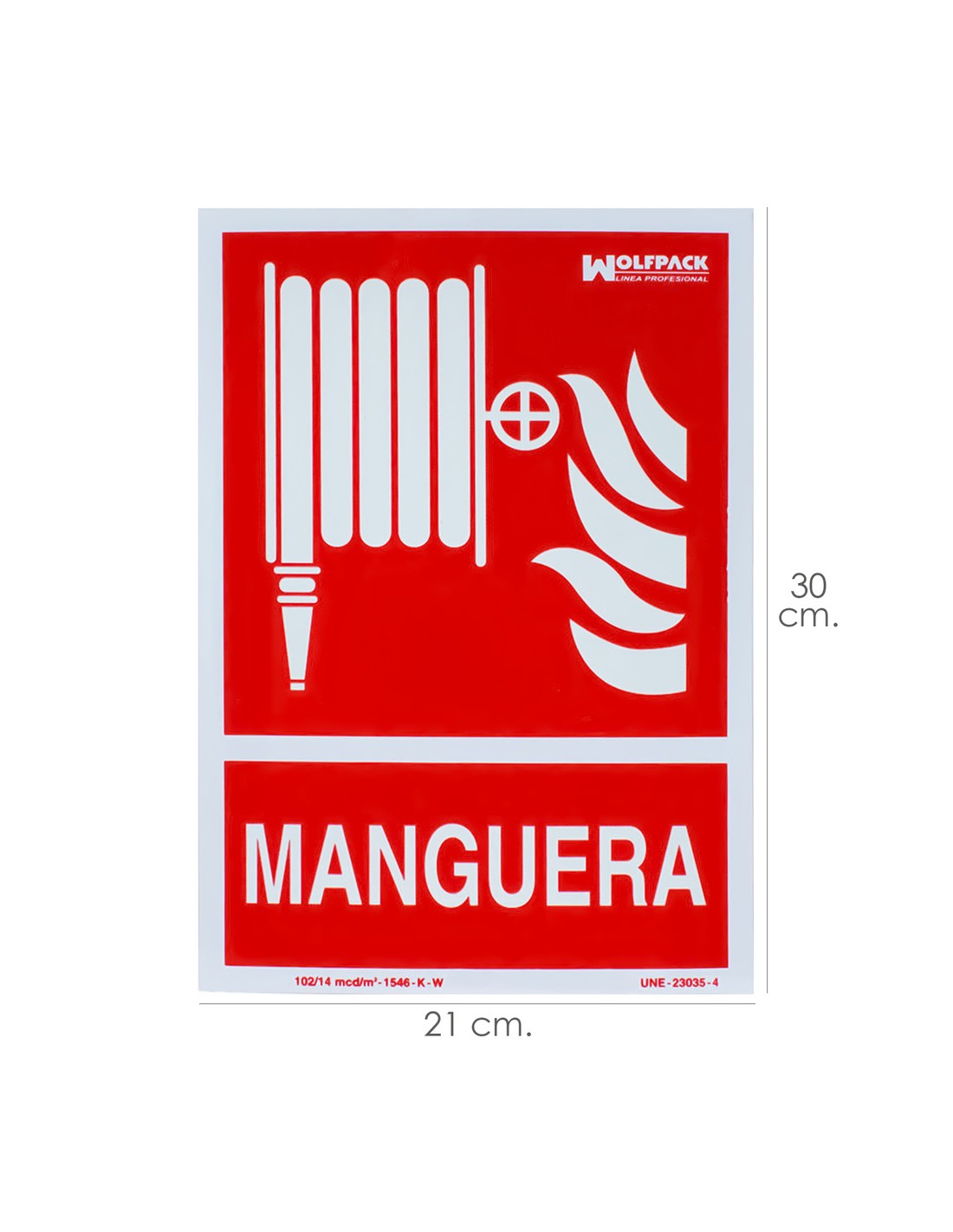 Cartel Manguera. - Medida: 30 x 21 cm. - Cartel / señal fluorescente en la oscuridad. - Fabricado bajo norma UNE 23035/4. - Realizado en plastico. - Articulo también conocido como: carteles, rotulos, señales.