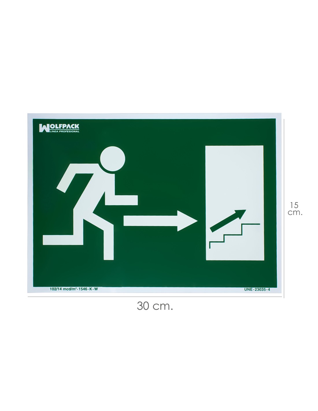 Cartel / Señal Fluorescente Salida Escalera Derecha Arriba 21x30 cm.