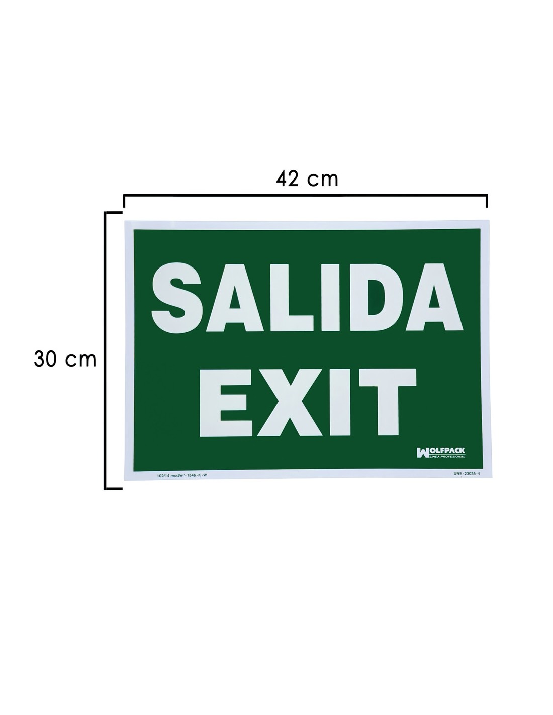 Cartel Salida Exit. - Medida: 30x42 cm. - Cartel / señal fluorescente en la oscuridad. - Fabricado bajo norma UNE 23035/4. - Realizado en plastico. - Articulo también conocido como: carteles, rotulos, señales.