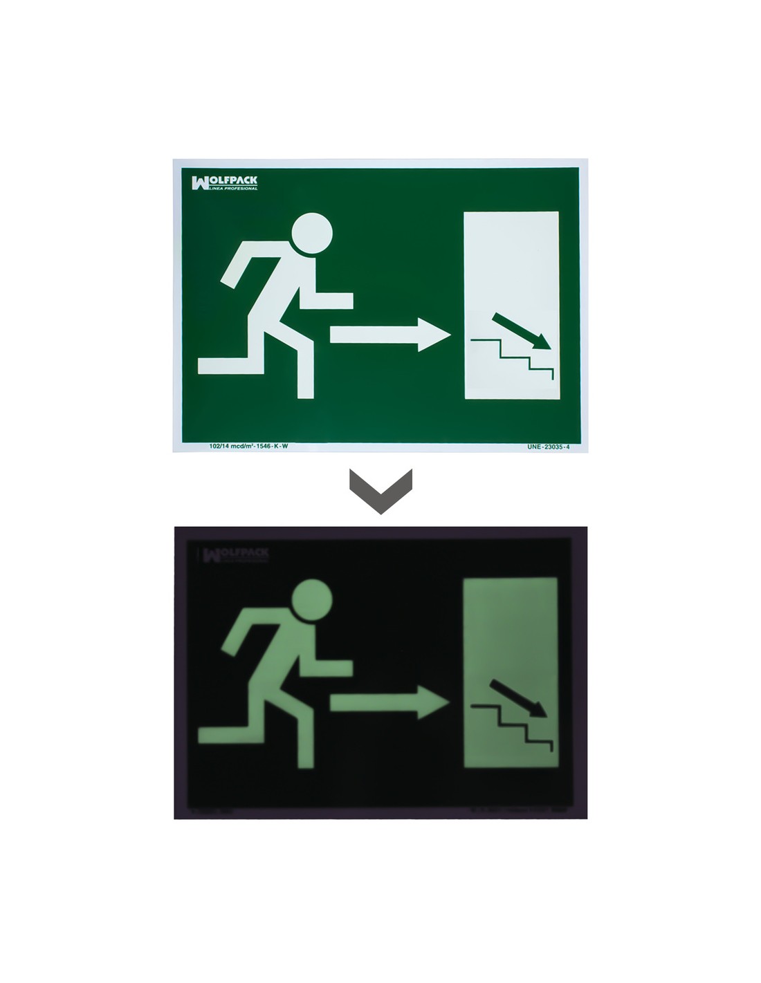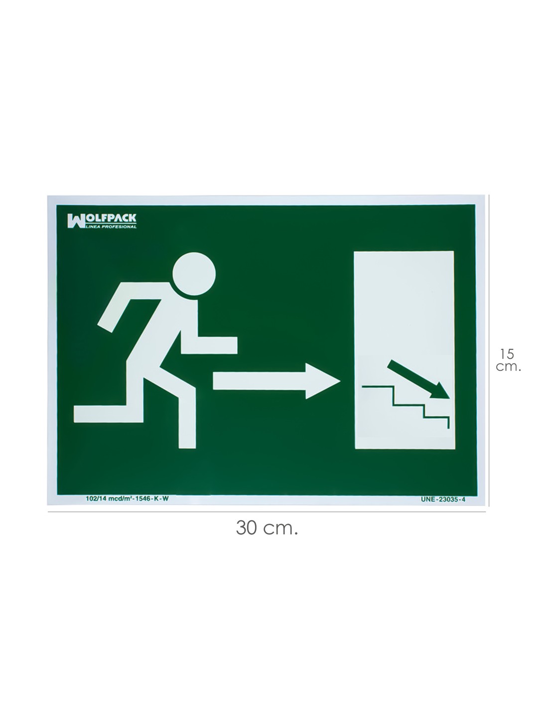 Cartel / Señal Fluorescente / Señal Fluorescente Salida Escalera Derecha Abajo 21x30 cm.