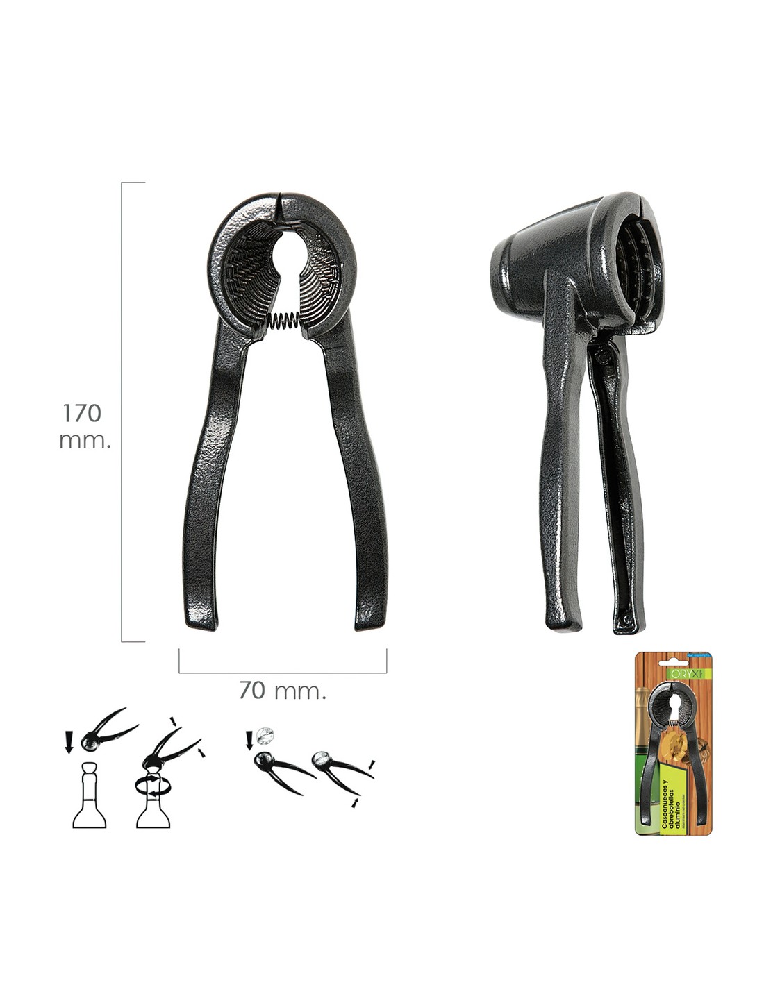- Articulo conocido como descorchador abridor, abrebotellas champan, rompe nueces, parte nueces, rompenueces, abrebotellas bar, quitachapas, saca corchos, sacacorchors multiusos.